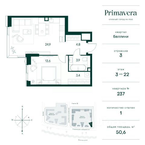 Клубный город на реке Primavera — это современный жилой комплекс премиум-класса, расположенный на первой береговой линии Москвы-реки в экологически чистом районе Покровское-Стрешнево. Под панорамными окнами квартир находится собственный экопарк с продуманной сетью прогулочных дорожек и современными детскими и спортивными площадками. За парком расположена набережная с собственным пляжем и зонами для отдыха. Клубный город на реке Primavera предлагает широкий выбор планировок для различных жизненных сценариев: от просторных однокомнатных квартир до пентхаусов и жилых помещений с террасами и патио. Выберите из 120 вариантов эргономичных планировок стандартного и евроформата. Из каждой квартиры открываются красивые виды на реку с углом обзора в 270 градусов. Дизайнерские лобби предлагают панорамный обзор на благоустроенный двор. Высокие потолки в 6 метров и качественная отделка создают атмосферу, схожую с пятизвездочными отелями. В Primavera есть всё необходимое для комфортной жизни в мегаполисе: • Образование для детей в шаговой доступности: 4 школы, 8 детских садов и развивающие центры с кружками и секциями. • Удобства на расстоянии приятной прогулки: супермаркеты, кафе, рестораны с верандами, салоны красоты, аптеки и многофункциональный центр для шоппинга и развлечений. • Умный дом: автоматизированное бесконтактное управление основными системами доступа и безопасности через мобильное приложение. Клубный город на реке Primavera выгодно сочетает комфорт городской жизни с близостью к природе. Живите в месте, где все создано для вашего удобства!