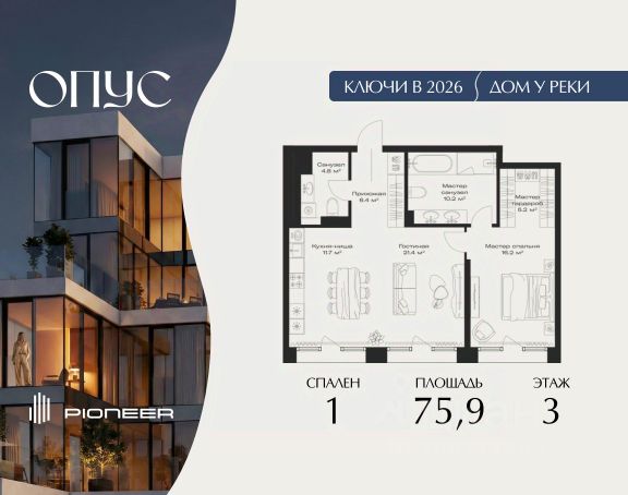 Прямая продажа от застройщика! Продаётся 1-к квартира общей площадью 75.9 кв. м. на 3-м этаже 11 этажного дома. Клубный дом ОПУС - современный шедевр архитектуры от компании PIONEER, трансформирующий пространство, меняющий привычный ход вещей. Близость Москвы-реки определила его исключительную форму, вдохновлённую стихией воды. Уникальный и единственный в своём роде ОПУС создаёт ощущение преображения, деликатно взаимодействуя с городской тканью. Продуманная территория с парковой атмосферой позволяет находиться в уединении в самом центре города, именно эти исключительные характеристики делают ОПУС особенным. Площадь однокомнатной квартиры здесь превышает 50 квадратных метров, а отдельные трёхкомнатные решения восхищают 266-метровым простором и видами на реку. Уникальные квартиры с 8 балконами на разные стороны света, не менее эффектные решения - кабинеты и гардеробные с отдельными балконами, а ванные комнаты с панорамными окнами и собственным балконом. ОПУС располагается в историческом месте с видом на Крутицкое подворье и Симоновский вал. Совсем рядом легендарное Замоскворечье - район, сохранивший камерную атмосферу старой Москвы. Локация уникальна также тем, что новые современные объекты будут соседствовать здесь с культовыми объектами культурного и исторического наследия города. За 22 года на рынке недвижимости компания PIONEER реализовала более 30 проектов. Сегодня PIONEER - девелопер премиальной недвижимости с 4 проектами класса премиум и deluxe. Продажа от застройщика. Покупка доступна в рассрочку и ипотеку. Звоните, и мы с удовольствием расскажем все подробности о проекте и условиях покупки.