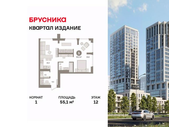 Квартира с кухней-гостиной и одной спальней в квартале "Издание". Особенности планировки: гардеробная, без отделки, свободная планировка. Квартиру можно купить онлайн. В квартире выполнена отделка "под чистовую". Установлены окна с двойным стеклопакетом, радиаторы с терморегуляторами. На полу цементно-песчаная стяжка. В квартиры заведены кабели для интернета и ТВ. Входная сейф-дверь не требует замены. Организован поквартирный учёт энергоресурсов (водоснабжение, отопление, электричество). Квартал "Издание" пронизан атмосферой локации, её энергетикой. Она воплощена в общей композиции, чистоте её форм, в графичных и динамичных силуэтных линиях. Дом на едином стилобате с корпусами от 15 до 43 этажеи поддерживают идею монументальности и одновременной лёгкости, но при этом у каждого из них сформировался свой характер. "Игра" с разными высотами, текстурой и формой фасадов позволила запустить в квартиры и дворы больше света, сделать пространства между домами проницаемыми и воздушными. Застройщик — компания Брусника. Инфраструктура квартала "Издание" включает соседский центр, детский центр творчества, магазины, предприятия услуг и офисные помещения. В шаговой доступности находятся: собственный парк размером 2,4 га, школы и детские сады, супермаркеты, фитнес-клубы, студии растяжки и йоги. Объявление от застройщика. Ипотека, материнский капитал. Обмен — один из способов покупки. Обмен подойдёт, если вы хотите быстро поменять старую квартиру на новую. Получить ипотеку или рассрочку, а также обменять квартиру можно онлайн. Запишитесь на онлайн-презентацию по телефону или на сайте. квартиры в нашей базе: ИЗД01-Ж5.12.7.