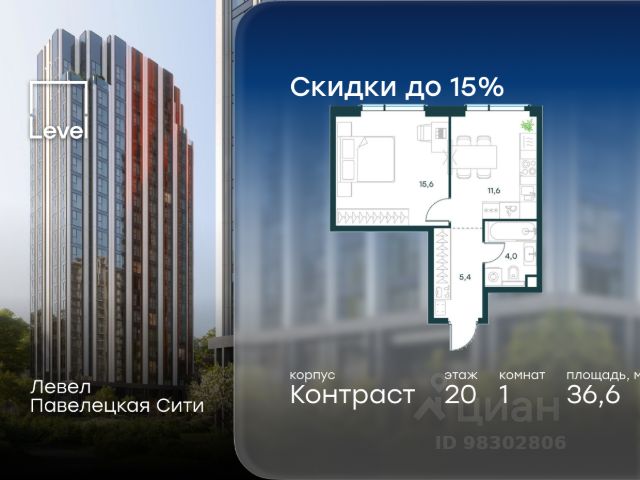 В Даниловском районе столицы (ЮАО) продаётся 1-комнатная квартира площадью 36.60 кв.м без отделки. Квартира расположена на 20 этаже 27-этажного корпуса 14 в жилом комплексе бизнес-класса Левел Павелецкая Сити. Высота потолков 3.00м.