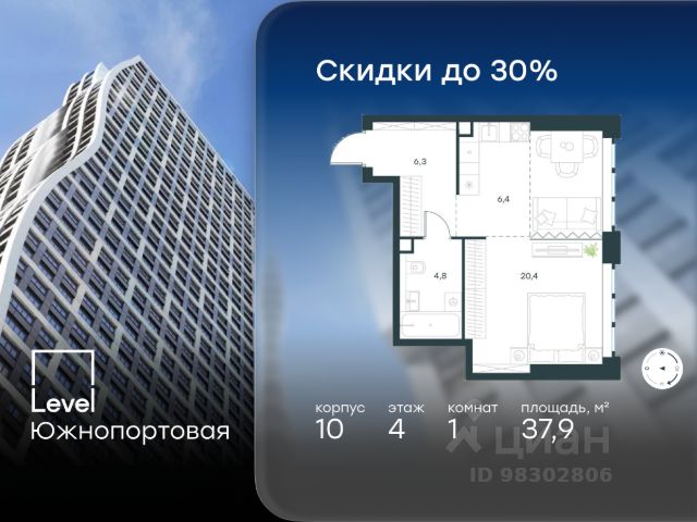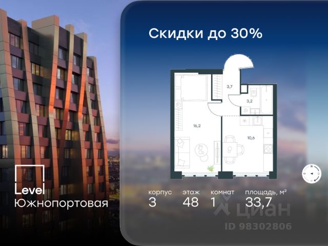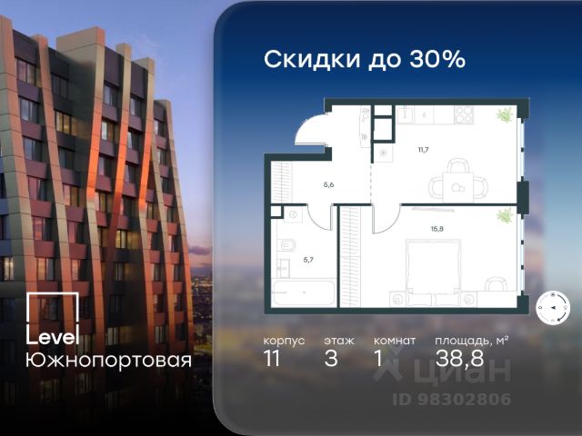 Цена указана с учётом скидки при 100%-й оплате, несубсидированной ипотеке, рассрочке (кроме программы "Рассрочка 0%"). В северной части района Печатники продается 1-комнатная квартира площадью 38.80 кв.м без отделки. Квартира расположена на 3 этаже 16-этажного корпуса 11 в жилом комплексе комфорт-класса Level Южнопортовая (компания Level Group/Левел групп). Отличная транспортная доступность: - 10 мин. пешком до станции метро "Кожуховская"; - 20 мин. пешком до станции МЦК "Дубровка"; - 3 мин. на авто до ТТК; - 13 мин. на авто до Садового кольца; - 15 мин. на авто до Бульварного кольца. Продуманный архитектурный проект: - авторская архитектура от бюро СПИЧ; - уникальные виды на реку, парки и достопримечательности города; - высота потолков в квартирах до 6 м; - окна высотой до 1,87 м с высоким коэффициентом сопротивления теплоотдаче. Расположение: Level Южнопортовая строится в северной части района Печатники - самой приближенной к центру. Здесь будет сформирован новый район "Южный порт", где построят крупный жилой и общественно-деловой центр, аналогичный Москва-Сити. В течение 10-12 лет в этом месте появятся не только жилые дома, но и развитая инфраструктура для жизни и работы. А еще совсем рядом находится набережная Москвы-реки, где планируется построить причалы для речных трамвайчиков и канатную дорогу. Уже сейчас вокруг жилого комплекса работают десятки магазинов и торговых центров, рядом расположено 6 парков, среди которых музей-заповедник "Коломенское". В 10 минутах пешком - 2 муниципальных и 2 частных детских сада, 7 общеобразовательных школ. Внутренняя инфраструктура: Для отдыха жителей в каждом корпусе предусмотрено лобби, оснащенное местами для отдыха, гостевыми санузлами и лапомойками, а в отдельных корпусах - камином. За счёт больших окон и высоких потолков пространства будут наполнены воздухом и светом. На первых этажах жилого комплекса откроются магазины, салоны красоты, фитнес-центр. Для детей строятся собственные детский сад и школа. Благоустройство: Внутренний двор комплекса разработан совместно с бюро GAFA. Основная идея - создать аналог Центрального парка в Нью-Йорке, гармонично сочетая высотные здания и большое изолированное парковое пространство. Вся площадь двора-парка будет огорожена и составит более 2 га, из которых 45% - озеленение. Одним из самых важных ландшафтных элементов здесь станет небольшая речка, наполняющаяся во время дождя. Вокруг неё появится сеть из островов, внутри которых расположатся тематические зоны спорта и отдыха. Технологии и инженерия: - автоматическая передача в управляющую компанию показаний квартирных счётчиков; - телефонная связь, телевидение и интернет на базе оптической мультисервисной сети; - гостевой Wi-Fi в лобби и на территории двора; - единый ключ доступа для входа на территорию комплекса. Продается 1-комнатная квартира в ипотеку рядом с метро Кожуховская.