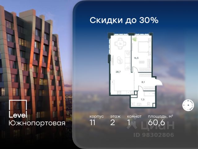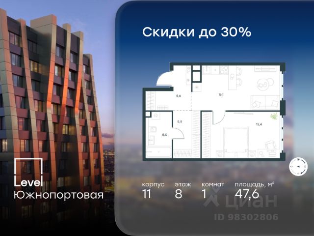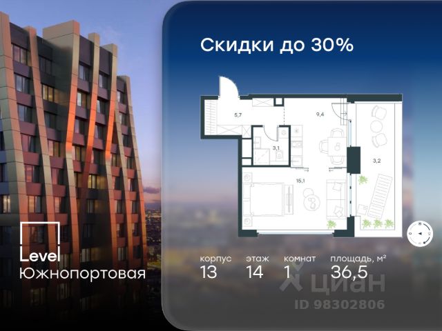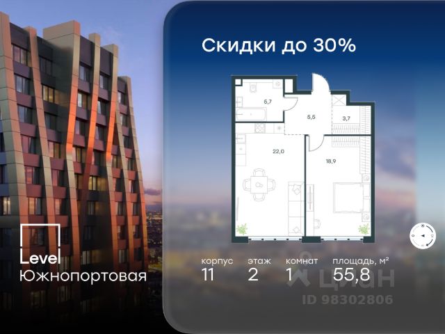 Цена указана с учётом скидки при 100%-й оплате, несубсидированной ипотеке, рассрочке (кроме программы "Рассрочка 0%"). В северной части района Печатники продается 1-комнатная квартира площадью 33.60 кв.м без отделки. Квартира расположена на 50 этаже 68-этажного корпуса 3 в жилом комплексе комфорт-класса Level Южнопортовая (компания Level Group/Левел групп). Отличная транспортная доступность: - 10 мин. пешком до станции метро "Кожуховская"; - 20 мин. пешком до станции МЦК "Дубровка"; - 3 мин. на авто до ТТК; - 13 мин. на авто до Садового кольца; - 15 мин. на авто до Бульварного кольца. Продуманный архитектурный проект: - авторская архитектура от бюро СПИЧ; - уникальные виды на реку, парки и достопримечательности города; - высота потолков в квартирах до 6 м; - окна высотой до 1,87 м с высоким коэффициентом сопротивления теплоотдаче. Расположение: Level Южнопортовая строится в северной части района Печатники - самой приближенной к центру. Здесь будет сформирован новый район "Южный порт", где построят крупный жилой и общественно-деловой центр, аналогичный Москва-Сити. В течение 10-12 лет в этом месте появятся не только жилые дома, но и развитая инфраструктура для жизни и работы. А еще совсем рядом находится набережная Москвы-реки, где планируется построить причалы для речных трамвайчиков и канатную дорогу. Уже сейчас вокруг жилого комплекса работают десятки магазинов и торговых центров, рядом расположено 6 парков, среди которых музей-заповедник "Коломенское". В 10 минутах пешком - 2 муниципальных и 2 частных детских сада, 7 общеобразовательных школ. Внутренняя инфраструктура: Для отдыха жителей в каждом корпусе предусмотрено лобби, оснащенное местами для отдыха, гостевыми санузлами и лапомойками, а в отдельных корпусах - камином. За счёт больших окон и высоких потолков пространства будут наполнены воздухом и светом. На первых этажах жилого комплекса откроются магазины, салоны красоты, фитнес-центр. Для детей строятся собственные детский сад и школа. Благоустройство: Внутренний двор комплекса разработан совместно с бюро GAFA. Основная идея - создать аналог Центрального парка в Нью-Йорке, гармонично сочетая высотные здания и большое изолированное парковое пространство. Вся площадь двора-парка будет огорожена и составит более 2 га, из которых 45% - озеленение. Одним из самых важных ландшафтных элементов здесь станет небольшая речка, наполняющаяся во время дождя. Вокруг неё появится сеть из островов, внутри которых расположатся тематические зоны спорта и отдыха. Технологии и инженерия: - автоматическая передача в управляющую компанию показаний квартирных счётчиков; - телефонная связь, телевидение и интернет на базе оптической мультисервисной сети; - гостевой Wi-Fi в лобби и на территории двора; - единый ключ доступа для входа на территорию комплекса. Продается 1-комнатная квартира в ипотеку рядом с метро Кожуховская.