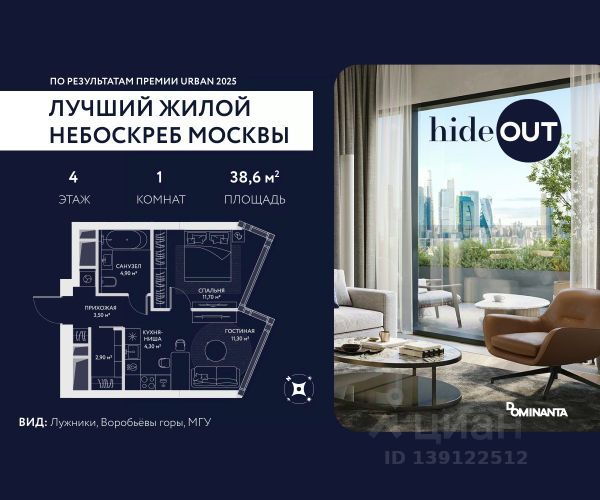 Прямая продажа от застройщика! Продается 1-комнатная квартира площадью 42.7 кв.м. на 5-м этаже 34-этажного дома в жилом комплексе ХАЙДАУТ с панорамными видами: Во двор. Высота потолков 3,25 м. В проекте действуют привлекательные условия покупки: скидка до 15% при рассрочке 0% на 1,5 года или при оплате одним платежом (в том числе ипотека). Предложение действует до 31.03.2026. ХАЙДАУТ — премиальный проект компании Dominanta. Это новый уровень жизни и комфорта без компромиссов. Две башни — 34 и 49 этажей — открывают захватывающие виды на Москву. Архитектурной доминантой проекта становится мост, соединяющий башни на высоте 80 метров. Закрытая территория, охрана 24/7, зона экстренной безопасности на подземном уровне, система пожаротушения. На мосту между башнями на 22-м этаже находится общественное пространство SocialHUB — предусмотрено 16 комфортных пространств для работы, отдыха и развлечений с панорамными видами и клубным форматом доступа. Концепция благоустройства ХАЙДАУТ — баланс между природой и технологичным городом будущего. На территории сада предусмотрены 15 зон для отдыха, работы, спорта и детей. Знаковым местом станет центральная площадь с амфитеатром и водопадом — сочетание камней, растений и струящейся воды создает идеальный баланс с природой. Застройщик АО "СЗ "ХАЙДАУТ", ИНН 7729058636, ОГРН 1027739319420. Проектная декларация на сайте наш.дом.рф. Предложение не является публичной офертой.