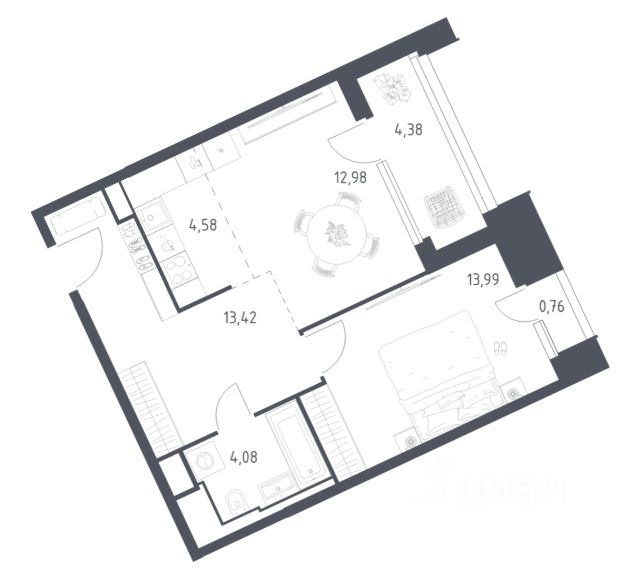 Информация об объектеОбщая площадь: 51.5 м², жилая — 16,9 м², кухня — 16,7 м²Этаж: 22 из 22Вид из окон: на улицу, панорамные видыСанузел: совмещённыйМебель: остаётся, что позволяет сразу заселиться или сдавать квартиру в арендуОсобенности: светлая и просторная квартира
