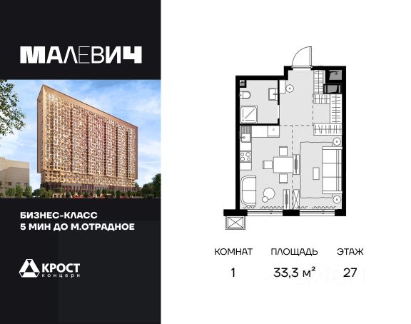 Продаётся 1-к квартира 34 кв.м. на 10-м этаже 28 этажного дома. Без отделки. Срок сдачи: 2 кв. 2026 г. Дом МАЛЕВИЧ - это идеальный проект мультифункционального жилого дома, в котором все элементы общественных и личных пространств тщательно продуманы и спроектированы. Здание состоит из двух объемов, один из которых сдвинут относительного другого в горизонтальной плоскости. Авторы идеи придумали совмещать различные слои и цвета бетонов в одной плоскости и рисовать картины не кистью и красками, а различными рецептами бетонов. Картины украсят полы, стены и потолки входных групп, подземного паркинга, мест общего пользования. В Доме МАЛЕВИЧ не один, а сразу 2 парковых общественных пространства, каждое из которых обладает собственной функцией: - внутренний двор только для жителей во внутренней части здания; - открытый парк-вернисаж на ул. Отрадная, доступный для внешних посетителей. Проект дома расширяет возможности вашей квартиры, предоставляя дополнительное пространство для работы, отдыха, учебы, дружеского общения и воспитания детей.Прямая продажа от застройщика ООО СЗ "Аквапарк "Отрадное ".