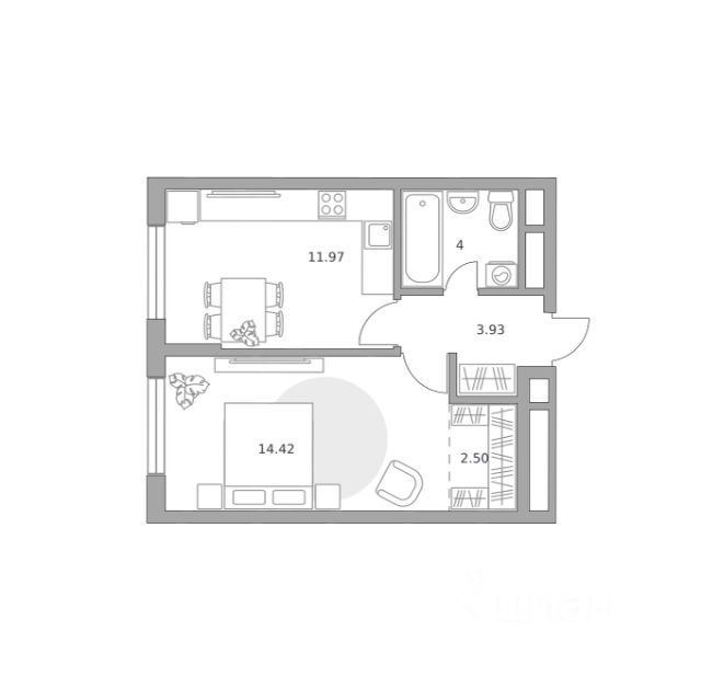 Продаётся 1-комнатная квартира 715, площадью 39,57 м², на 14 этаже в ЖК "Пехра" корпус 1. Стоимость — от 7873668 руб. Квартира без отделки, планировка односторонняя, окна на улицу.