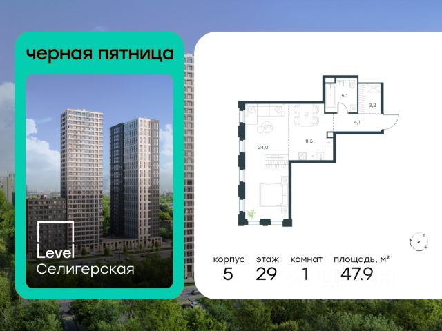 Прямая продажа от застройщика. Продаётся 1-комнатная квартира общей площадью 53.82 м² с предчистовой отделкой в ЖК "Селигер Сити" на 29-м этаже башни Лисицкого. Корпуса четвертой очереди ЖК "Селигер сити" названы в честь трех великих представителей науки и архитектуры, новаторское видение которых — слишком смелое для своего времени — нашло воплощение в уникальных домах жилого комплекса. Вдохновленные авангардными идеями знаменитого советского архитектора Эля Лисицкого, архитекторы создали яркий центр притяжения всего района, задающий новый стандарт жизни в современном мегаполисе — две высокие "Башни Лисицкого" с современной интерпретацией горизонтального небоскреба. Преимущества проекта: - 2 минуты пешком от метро "Селигерская" - Архитектурное решение от голландского бюро MLA + - Одна из самых больших придомовых территорий в Москве - Огороженная охраняемая территория, круглосуточное видеонаблюдение - Европейский подход к благоустройству от бюро Wowhaus: появится парадный бульвар, аллея с фонтаном и арт-объектом, что дополнит уже сформированное благоустройство: детские площадки для разных возрастов, площадки для воркаута, дорожки для бега и пеших прогулок, места для отдыха - Два детских сада, школа начальных классов и центр доп.образования - Искусственный пруд на территории комплекса с благоустроенной набережной и мостом - Продуманная концепция инфраструктуры: уютные кафе и рестораны, супермаркет, магазин фермерских продуктов, бытовые службы, салон красоты, детские сады - Ультрасовременные инженерные решения - Подземный паркинг с зарядными станциями для электромобилей, постами подкачки шин и келлерами - Лобби по индивидуальному дизайн проекту от европейского бюро Вlank Architects: лаунж-зоны, ресепшен, колясочная, помещение для мытья лап животным после прогулки - Надежный девелопер с опытом премиальных проектов MR Group Расположение комплекса: - 2 минуты от станции метро "Селигерская" - 7 минут на машине до станции метро "Окружная" - Предусмотрен удобный выезд в сторону ТТК (всего 9 км или 15 минут без пробок) - МКАД в 10 минутах на машине Компания MR Group предлагает своим клиентам специальные условия приобретения квартир в рамках программ ипотечного кредитования от банков-партнеров. Продам 1-комнатную квартиру в ипотеку рядом с метро Селигерская.