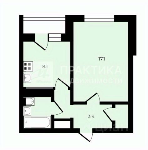 Общая площадь 34,6 м2.