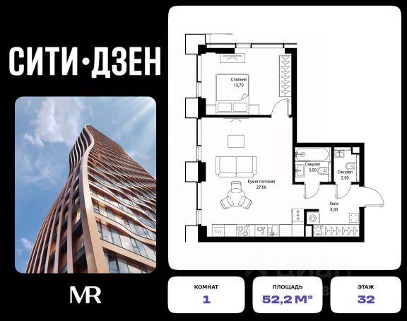 Продается 1-комнатная квартира от застройщика в жилом мультиквартале СИТИДЗЕН на 12-м этаже в корпусе #7. Общая площадь лота составляет 40.50 м² В лобби корпуса #7 представлены: 1. Small-лобби с зоной отдыха 2. Почта 3. Колясочная 4. Лапомойка 5. Лифтовой холл 6. Санузел 7. Помещение уборочного инвентаря СИТИДЗЕН — это большой город в миниатюре. Инфраструктура мультиквартала организована по принципу шаговой доступности от подъезда до любой нужной точки: супермаркета, кофейни, салона красоты, фитнес-центра и др. В домах представлены лобби с атмосферой премиального резорта, дизайн которых вдохновлен французскими интерьерами 1960-х годов. Концепция благоустройства территории мультиквартала предусматривает большое количество вечнозеленых растений, что создает ощущение максимальной близости к природе. Жителей квартала ждут места для отдыха, игр, занятий спортом и прогулок с домашними питомцами. В приватном дворе с собственным садом предусмотрена зеленая комьюнити-гостиная для дружеского отдыха и общения, одна из стен которой подходит для кинопроекций, а также зеленый рабочий кабинет в саду (бизнес-гардена), оборудованный wi-fi станцией и usb-разъёмами для зарядки устройств. Маленьких жителей ждут авторские игровые площадки для разных возрастных групп (от 0 до 12 лет). Начало строительства - 1 квартал 2024 года. Окончание строительства - 3 квартал 2027 года.Компания MR предлагает своим клиентам специальные условия приобретения квартир в рамках программ ипотечного кредитования от банков-партнеров.