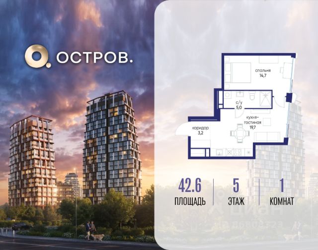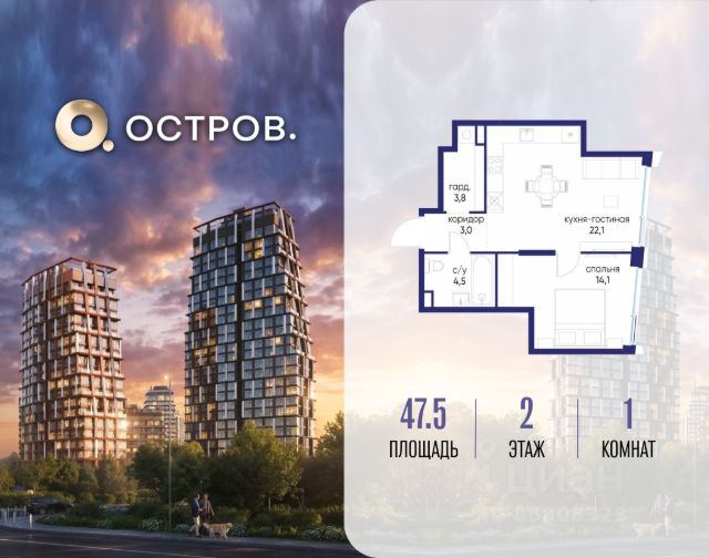 Скидка до 8% действует до 15.04.2026 г. при 100% оплате и не субсидированной ипотеке. Продаётся однокомнатная квартира от застройщика: общая площадь 47.30 м², жилая 13.10 м², кухня 21.30 м², 17, жилой квартал "Остров 7", корпус 7 (7 квартал) (секция 2). срок сдачи: 4-кв. 2025. , 1 совмещенный санузел. В жилой зоне 2 больших окна на одну сторону, хорошая инсоляция. Позвоните сейчас и забронируйте квартиру! Купите квартиру в доме у прибрежного парка, в квартале ОСТРОВ.7. Это семь корпусов премиум- и бизнес-класса в одном из лучших мест ОСТРОВА - между бульваром и парком, поблизости от реки. Стильные корпуса имеют узнаваемый вид благодаря бионической пластике фасадов, приподнятых над землей. Для жителей предусмотрены детский клуб, фитнес-рум, коворкинг, переговорные, лаунжи. На крышах устроены видовые общественные пространства с зонами для отдыха и спорта. Двор расположен на двух уровнях: нижний ландшафтный парк и верхняя городская терраса. ОСТРОВ.7 - часть жилого комплекса на западе Москвы, в 15 минутах езды от центра. Это настоящий заповедник посреди большого города, в окружении реки и 650 га заповедников. Здесь все необходимое находится по соседству: от детского сада до супермаркета, от фитнес-зала до серфинг-центра. На территории созданы все условия для отдыха и общения: клубная инфраструктура в домах и дворы-парки, набережные и променады, маршруты для спортсменов, детей и возрастных жителей. В нескольких минутах ходьбы расположена станция метро "Терехово" БКЛ. На автомобиле - 10 минут до Москва-Сити и 15 минут до Садового кольца.