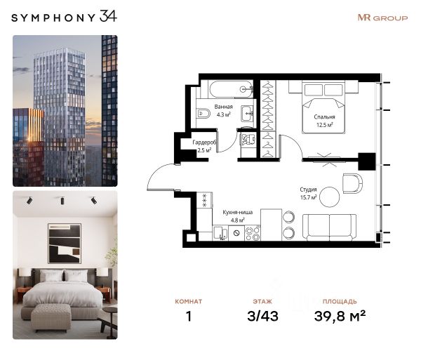 Дом сдан. Ключи в день покупки! В продаже 1-комнатная квартира площадью 29.10 м² с предчистовой отделкой на 38 этаже 54 этажного дома в корпусе Графит. ЖК Симфония 34 - концептуально новый жилой комплекс премиум-класса с подземной парковкой, состоит из четырех башен высотой 36 - 54 этажа. Квартиры сдаются с базовой (предчистовой) отделкой MR BASE или дизайнерской чистовой отделкой MR READY. Высота потолков 3 - 6 метров, окна высотой до 2,6 м. Более 100 кладовых в подземной части ЖК и более 500 на этажах. Безопасность - Система контроля входа на территорию комплекса, биометрия - Система автоматического водяного пожаротушения и противопожарного водопровода, система пожарной вентиляции - Доступ на парковку при помощи системы распознавания автомобильных номеров, карточка для контроля доступа резидентов - Система видеонаблюдения - Круглосуточная связь через приложение, телефон, голосовые сообщения с охраной, консьержем, call-центр. Расположение Пешком - 6 минут до метро "Дмитровская" - 15 минут до Тимирязевского парка На машине - 5 минут до Савеловского вокзала и Аэроэкспресса в Шереметьево - 10 минут до Москва-Сити и Садового кольца Благоустройство - 70% территории отведены под зеленые насаждения и ландшафтный дизайн - Приватный Японский сад - Детские площадки с зонированием по возрасту - Clubhouse для резидентов - Wellness & SPA - Зона для пикника, зона с гамаками - Центральное лобби, ресторан, коммерческие помещения - Дополнительный вход/выход на территорию комплекса Окружение - В 10 минутах от Symphony 34 находится дизайн-завод Flacon, где регулярно проходят культурно-образовательные и развлекательные мероприятия - Тимирязевский парк расположен в 850 м. Площадь парка 232 га - Рядом расположен парк "Дубки", площадью 16,5 га. - В 15 минутах расположен Хлебозавод 9. Здесь находятся шоурумы брендов, кафе разных кухонь мира, образовательные проекты и площадки для мероприятиКомпания MR предлагает своим клиентам специальные условия приобретения квартир в рамках программ ипотечного кредитования от банков-партнеров. Купить 1-комнатную квартиру в ипотеку рядом с метро Тимирязевская.