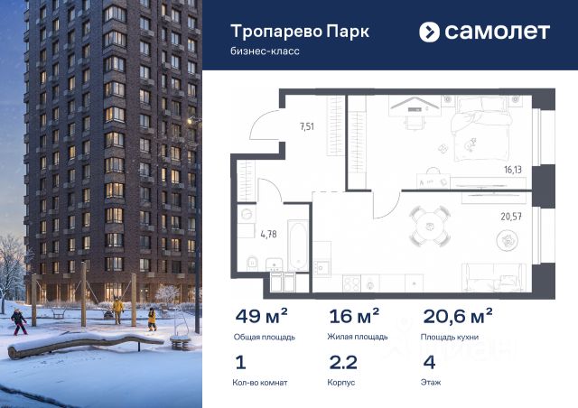 Продажа 1-комнатных квартир в ипотеку рядом с метро Тютчевская