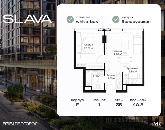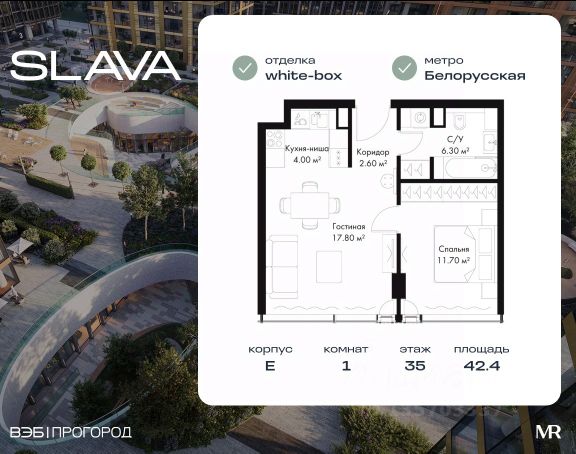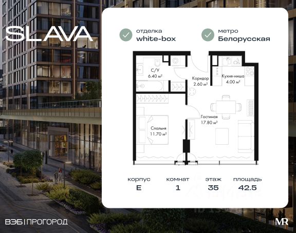 Квартиры премиум-класса в жилом комплексе SLAVA у м. "Белорусская" от застройщика. В продаже 1-комнатная квартира площадью 43 м² на 3-м этаже корпуса E. Новый современный жилой комплекс премиум-класса SLAVA расположен в той части центра, где традиция соединяется с прогрессивными городскими тенденциями. Здесь историческая Москва встречается с передовым миром. Популярные театры и старинные церкви соседствуют с современным деловым кварталом и гастрономическим кластером Депо. SLAVA находится всего в 5 мин. пешком от м. "Белорусская", по-новому открывая Ленинградский проспект. Проект был разработан легендарным архитектором Хельмутом Яном, основателем чикагского архитектурного бюро Jahn. Его работы отмечены множеством наград и реализованы в мегаполисах по всему миру. По замыслу архитекторов, жилой комплекс образуют четыре высотные башни, соединенные одноэтажным стилобатом "Хронограф". Здесь, на первом уровне, открытые и закрытые общественные пространства: небольшие сады, места для встреч и отдыха, кафе, рестораны, магазины, спортивный центр и даже выставочное пространство. Важнейшей особенностью пространства является его всесезонность: благодаря правильной организации, ландшафтному дизайну, инженерной инфраструктуре здесь будет уютно и в жару, и в xолод, и в ненастье. На втором уровне стилобата расположится приватный парк для жильцов. Особенности комплекса: - Идеальное расположение в престижной части Москвы (10 мин. от Кремля) - Панорамное остекление - Подземный паркинг с дизайнерской отделкой - Современные инженерные системы - Продуманная внутренняя инфраструктура - Приватный сад 7700 кв.м. Расположение комплекса: - 5 минут до станции метро "Белорусская" - 3 минуты до ТТК - 8 минут до "Садового кольца" Компания MR предлагает своим клиентам специальные условия приобретения квартир в рамках программ ипотечного кредитования от банков-партнеров.