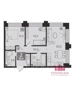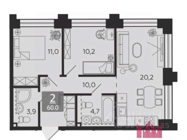 Кухня: 10,2 м². Просторная кухня с возможностью организации обеденной зоны.