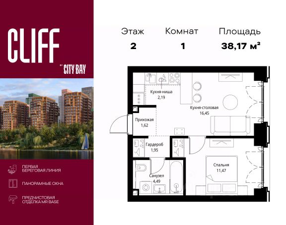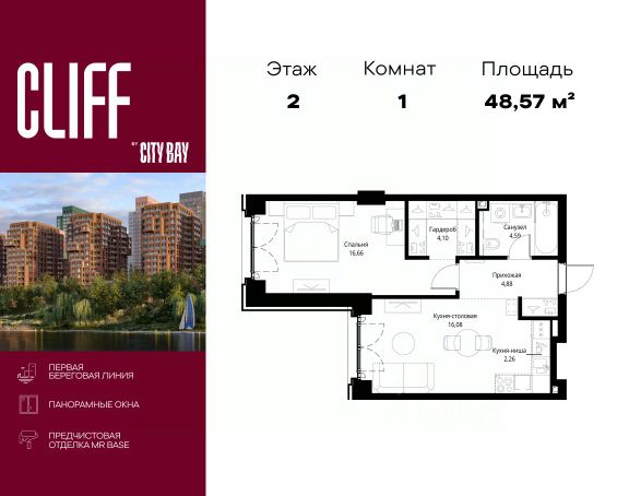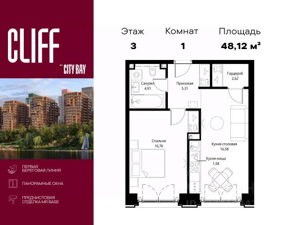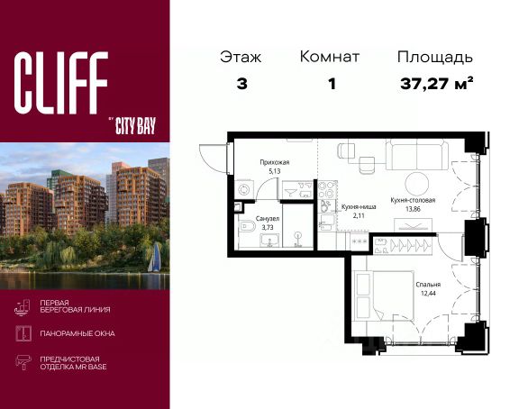 Прямая продажа от застройщика. Продаётся 1-комнатная квартира общей площадью 49.09 м² с предчистовой отделкой в ЖК City Вау, квартале Cliff, на 5-м этаже 15 этажного дома. Cliff by City Вау - это пять клубных домов на первой линии озелененной набережной Реки Москвы. Со стороны южного фасада, обращенного к воде, находится прогулочная зона, организующая входы в жилые секции. Вдоль северного фасада пятой очереди проходит общеквартальный озелененный бульвар с тематическими зонами и дворовыми территориями. В каждой секции предусмотрены сквозные входные группы, а между секциями - проходы для пешеходов, связывающие набережную и бульвар с местами для отдыха внутри квартала. Данное решение позволяет сделать комплекс с доступной и безбарьерной городской средой. Со стороны бульвара у каждой башни для жильцов комплекса расположены приватные потайные дворики, огороженные живой изгородью и интегрированные в общий ландшафт бульвара. Из-за перепадов высот по рельефу, уровень бульвара возвышается относительно уровня дворов, что делает их еще более камерными. Доступ на территорию со стороны бульвара осуществляется через калитку. В каждом здании комбинируется максимальное количество и разнообразие форматов квартир: от видовых квартир с зелеными террасами и лоджиями до квартир малого формата. Входные группы 1-ых этажей поистине уникальные пространства. Лобби имеют высоту потолков 5 - 6 м и панорамные окна. В отделке используются дорогие натуральные материалы:шпон дерева, мрамор, металл и др. Одноуровневый паркинг с дополнительными функциями: - Велопарковка, - Места для подкачки шин, - Зоны погрузки и разгрузки, - Зарядки для электрокаров, - Кладовыми помещениями. Концепция жилого комплекса City Вау - настоящий город в городе с отлично развитой инфраструктурой и собственной благоустроенной набережной. На территории жилого комплекса расположено пять кварталов - Atlantic, Pacific, Indian, North, Cliff. Жилой квартал City Вау отличается оригинальной концепцией и выделяется среди других проектов такими характеристиками как: - Архитектура, - Виды из окон, - Природное окружение, вызывая гордость у жителей и восхищение у прохожих. Вся жизнь района Покровское-Стрешнево строится вокруг водных объектов: - Пойма реки Сходни с уникальной экосистемой, - Речка Химка и Химкинское водохранилище, - Москва-река, - Канал имени Москвы. Кругом вода, и местные с удовольствием этим пользуются. А сразу за рекой - центр водного спорта в Строгино с вейк-парком и яхт-клубами. Помимо воды, здесь очень много зелени: - Рядом Сходненский ковш памятник природы, естественный амфитеатр глубиной 40 метров; - Парк при усадьбе Братцево с фруктовым садом; - Дубовая роща "Маяк", - Алешкинский лес; - Лесопарк Покровское-Стрешнево с пляжами и бобрами. Главные транспортные артерии района: - Волоколамское шоссе, - Таганско-Краснопресненская линия метро и МЦД-2. Всего за 20 минут можно добраться до центра на машине или метро, а МЦД связывает ЖК City Вау с