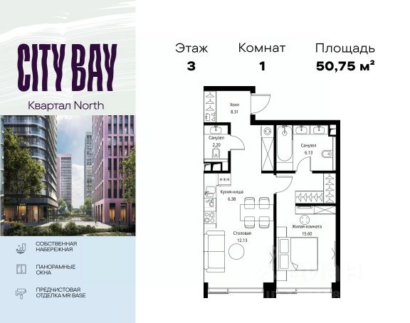 Прямая продажа от застройщика. Продаётся 1-комнатная квартира общей площадью 44.04 м² с предчистовой отделкой в ЖК City Вау, квартале North, на 2-м этаже 10 этажного дома. Концепция жилого комплекса City Вау - настоящий город в городе с отлично развитой инфраструктурой и собственной благоустроенной набережной. На территории жилого комплекса расположено пять кварталов - Atlantic, Pacific, Indian, North, Cliff. Жилой квартал City Вау отличается оригинальной концепцией и выделяется среди других проектов такими характеристиками как: - Архитектура, - Виды из окон, - Природное окружение, вызывая гордость у жителей и восхищение у прохожих. Вся жизнь района Покровское-Стрешнево строится вокруг водных объектов: - Пойма реки Сходни с уникальной экосистемой, - Речка Химка и Химкинское водохранилище, - Москва-река, - Канал имени Москвы. Кругом вода, и местные с удовольствием этим пользуются. А сразу за рекой - центр водного спорта в Строгино с вейк-парком и яхт-клубами. Помимо воды, здесь очень много зелени: - Рядом Сходненский ковш памятник природы, естественный амфитеатр глубиной 40 метров; - Парк при усадьбе Братцево с фруктовым садом; - Дубовая роща "Маяк", - Алешкинский лес; - Лесопарк Покровское-Стрешнево с пляжами и бобрами. Главные транспортные артерии района: - Волоколамское шоссе, - Таганско-Краснопресненская линия метро и МЦД-2. Всего за 20 минут можно добраться до центра на машине или метро, а МЦД связывает ЖК City Вау с северными, восточными и юго-восточными районами. Компания MR предлагает своим клиентам специальные условия приобретения квартир в рамках программ ипотечного кредитования от банков-партнеров.