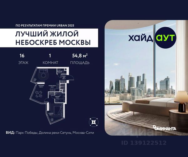 Прямая продажа от застройщика! Продается 1-комнатная квартира площадью 52.5 кв.м. на 17-м этаже 34-этажного дома в жилом комплексе ХАЙДАУТ с панорамными видами: Парк Победы, Долина реки Сетунь, Москва-Сити, Воробьевы горы. Высота потолков 3,25 м. В проекте действуют привлекательные условия покупки: скидка до 15% при рассрочке 0% на 1,5 года или при оплате одним платежом (в том числе ипотека). Предложение действует до 31.03.2026. ХАЙДАУТ — премиальный проект компании Dominanta. Это новый уровень жизни и комфорта без компромиссов. Две башни — 34 и 49 этажей — открывают захватывающие виды на Москву. Архитектурной доминантой проекта становится мост, соединяющий башни на высоте 80 метров. Закрытая территория, охрана 24/7, зона экстренной безопасности на подземном уровне, система пожаротушения. На мосту между башнями на 22-м этаже находится общественное пространство SocialHUB — предусмотрено 16 комфортных пространств для работы, отдыха и развлечений с панорамными видами и клубным форматом доступа. Концепция благоустройства ХАЙДАУТ — баланс между природой и технологичным городом будущего. На территории сада предусмотрены 15 зон для отдыха, работы, спорта и детей. Знаковым местом станет центральная площадь с амфитеатром и водопадом — сочетание камней, растений и струящейся воды создает идеальный баланс с природой. Застройщик АО "СЗ "ХАЙДАУТ", ИНН 7729058636, ОГРН 1027739319420. Проектная декларация на сайте наш.дом.рф. Предложение не является публичной офертой.