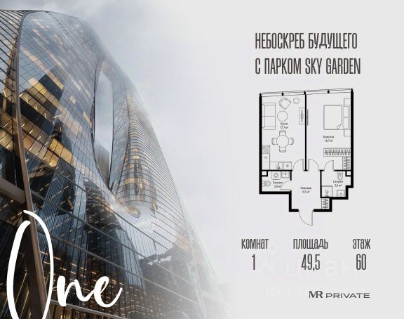 Старт продаж! Квартиры в Москва-Сити в самой инновационной башне Оне. В продаже 1-комнатная квартира площадью 52.80 м² на 46-м этаже. Новый современный жилой комплекс премиум-класса Оне расположен в самом сердце деловой жизни столицы — в Москва-Сити, где захватывающая дух архитектура встречается с безупречным уровнем комфорта. Оне находится в Пресненском районе, в пешей доступности от станции метро "Деловой центр". Проект был разработан выдающимся архитектором Сергеем Кузнецовым при участии международного бюро Gensler. Уникальная скульптурная форма башни, вдохновленная лентой Мебиуса, создает новый узнаваемый силуэт делового центра и задает непревзойденный стандарт вертикальной жизни. По замыслу архитекторов, жилой комплекс представляет собой две вертикальные башни, соединенные в нижней и верхней точках. На 85 этаже расположен Sky Garden — самый высокий в Европе парк с оазисом природы и секретным садом в облаках, а на 83 этаже парит стеклянный мост Sky Bridge с панорамными видами. Важнейшей особенностью комплекса является его всесторонняя инфраструктура по принципу All-in-Оне: закрытый Клуб с лаунжами, приватным кинотеатром, бильярдной, рабочими зонами и фитнесом. Здесь же расположена торговая галерея бутиков и премиальный гастро-кластер, концепцию которого разработал известный ресторатор Александр Сысоев. Особенности комплекса: - Эксклюзивная архитектура от главного архитектора Москвы - Самый высокий в Европе небесный сад Sky Garden на 85 этаже - Панорамное остекление от пола до потолка во всех квартирах - Smart-инженерия и сервис уровня пятизвездочного отеля - Приватная Клубная инфраструктура All-in-Оне - Трехуровневый паркинг с зарядными станциями для электрокаров - Круглосуточная безопасность и консьерж-сервис Расположение комплекса: - Пешая доступность от станции метро "Деловой центр" - 2 минуты до Экспоцентра - 5 минут до Дома Правительства - 7 минут до Кутузовского проспекта