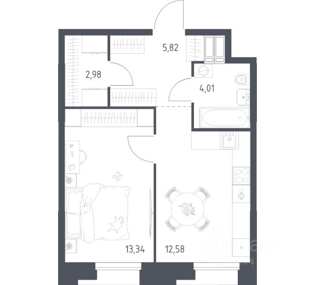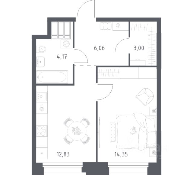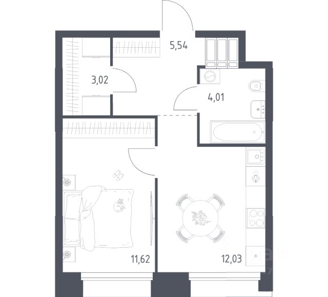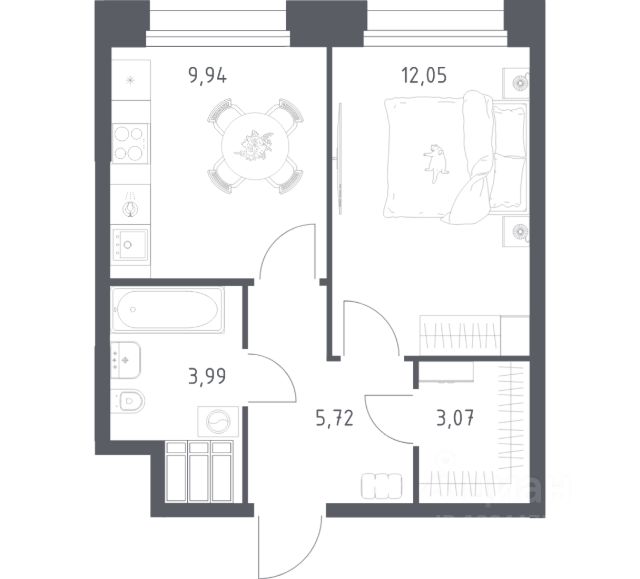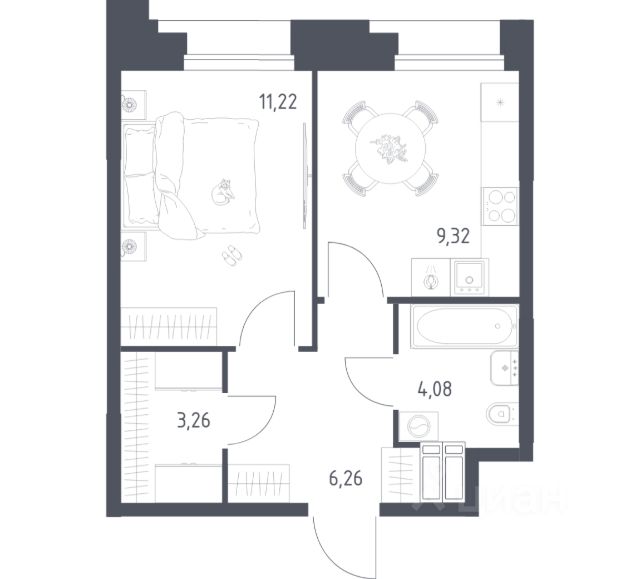 Общая площадь 37,02 кв.м, 19 этаж. Срок сдачи конец 2026 года.