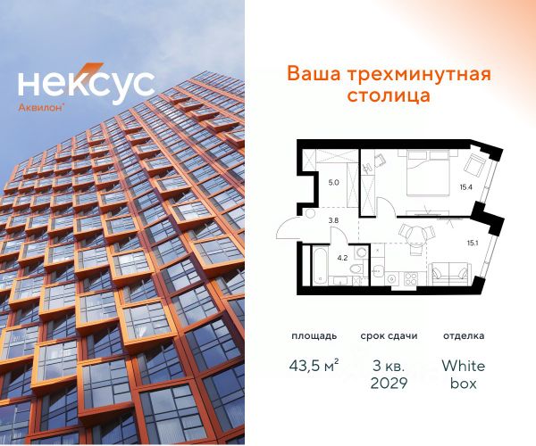 Продажа от застройщика. О проекте: В основе Несус Аквилон лежит принцип трехминутного города, где вся жизнь: работа, отдых, здоровье, общение и культура сосредоточены в шаговой доступности. Он не просто экономит время, а кардинально перераспределяет его. В этих условиях главным логистическим узлом становится лифт, который в считанные секунды переносит из квартиры в собственный фитнес-рум, панорамный двор или современный коворкинг. Здесь вы сами решаете: оказаться в эпицентре событий, чувствуя пульс мегаполиса, или наслаждаться тишиной и приватностью своего пространства. И главное — вы можете переключаться, находя идеальный баланс каждый день. Несус Аквилон - ваша трехминутная столица! Транспортная доступность Несус Аквилон дарит независимость от расстояний и логистики. Ваше время теперь принадлежит только вам меньше минуты до метро Молодежная 2 минуты до Рублевского шоссе 10 минут до Проспекта Багратиона 15 минут до Москва-Сити 10 минут до МКАД 20 минут до ТТК Архитектура 46-этажная башня станет новой архитектурной доминантой, символизирующей динамику и технологичность современной жизни.Комбинация алюминиевых кассет, стеклофибробетона и витражного остекления фасада создает монументальную оболочку, а теплая цветовая гамма добавляет масштабной форме визуальной теплоты. Три разных по характеру стороны башни — от строгой "зубчатой" геометрии до живописных эркеров — создают многогранный, ритмичный образ, дополняемый невесомыми балконами со стеклянным ограждением. Архитектура проекта живет в диалоге с городом: променад вдоль парящего стилобата со стрит-ретейлом становится естественным продолжением общественного пространства. Планировки в концепции Разумные метры Мы создали квартиры, где пространство работает на ваш комфорт. В основе концепции "Разумные метры" правильная геометрия помещений и тщательно продуманные эргономичные решения. - Высота потолков до 3,55 метров - Многообразие планировок: от студий до четырехкомнатных квартир классического и евро-формата - Многофункциональные пространства: кухни-гостиные для приема гостей и зонированные мастер-спальни - Продуманная инфраструктура быта: отдельные постирочные и гостевые санузлы - Удобные системы хранения: встроенные ниши и гардеробные зоны - Уникальные форматы: пентхаусы, комнаты с двумя окнами, угловое панорамное остекление - Возможность открытия окон на всех высотах Для студий и однокомнатных квартир мы предлагаем готовое решение — отделку White box, позволяющую сразу приступить к чистовому ремонту на ваш вкус. Для остальных планировок предусмотрена черновая отделка, чтобы воплотить все интерьерные пожелания. Здесь пространство адаптируется под ваш образ жизни, а не вы подстраиваетесь под планировку. Приватное благоустройство Скрытый на виду панорамный двор-терраса, расположенный на высоте 7 метров, объединил внутреннюю камерность и внешнюю динамику городской жизни. - Многоуровневое озеленение с всесезонными композициями, сохраняющими декоратив