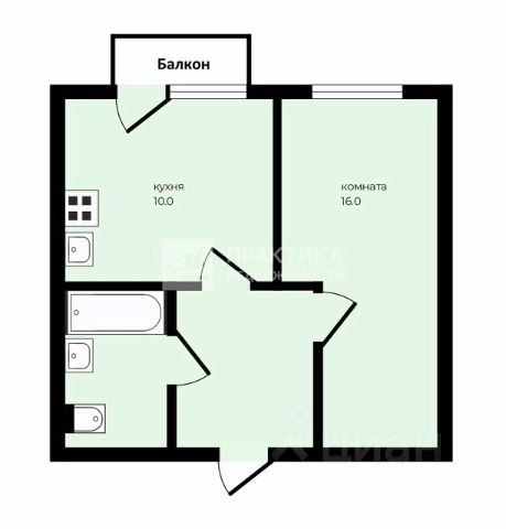 — функциональная планировка: большая кухня-гостиная 13.4 кв.м., просторная комната 12,7 кв.м., вместительная прихожая с нишей для шкафа, совмещенный сан.узел 4.1 кв.м.