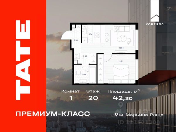 Указанная акционная стоимость доступна при 100% оплате или ипотеке без субсидирования. Цена действует до 31.12.2025 23:49:59. Стоимость без акции 28208175. Продаётся 1-комнатная квартира от застройщика в ЖК премиум-класса TATE на 31 этаже. Общая площадь 42,7 м². Отделка предчистовая (white box). Башня В. Срок сдачи: 2 кв. 2027 Выдача ключей: 4 кв. 2027 Проект расположен на границе с ЦАО в районе Марьина Роща на улице Веткина. В шаговой доступности находится метро Марьина роща (5 минут), парки Останкино и Сокольники (15 минут). До центра столицы время в пути составит 15 минут на авто. На территории премиум квартала откроют спа- и фитнес-центр, бассейн, оборудуют детские и спортивные площадки. Предусмотрен подземный двухуровневый паркинг с контролем доступа и лифтом на жилые этажи. Паркинг рассчитан на 568 машино-мест. Доступ в жилой комплекс осуществляется по биометрическому контролю - Face ID. Территория закрытая с видеонаблюдением и консьерж-сервисом 24/7. Особенности башни В • Потрясающие виды на 4 стороны: Москва-Сити | Останкино | ВДНХ | Тимирязевский парк • Уголовок остекление • Большие метражи квартир • Кладовые на этаже • Квартиры с мастер-спальнями и гардеробными Особенности ЖК: - Исторический район; - Панорамная лаундж-зона на высоте 140 м; - На 4041 этажах видовые пентхаусы площадью до 200 м²; - Два вида отделки: лаконичный и монохромный WhiteBox или готовые интерьеры с безупречным чувством меры - Лобби с потолками высотой почти 6 м; - В отдельном 6-этажном здании на территории будут: просторный фитнес-центр с бассейном, концептуальный ресторан, офисные пространства; - Детские зоны и спортивные площадки; - 6 скоростных лифтов; - Лапомойки для животных; - Безбарьерная среда.