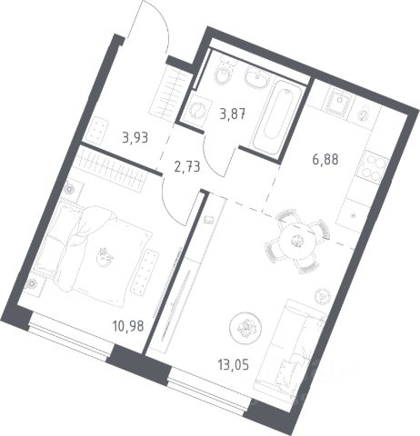 Продаётся 1-комнатная квартира в строящемся доме (Корпус 3), срок сдачи: IV-кв. 2027, общей площадью 39.8 кв.м., на 12 этаже.