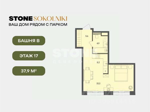 Старт продаж квартир в ЖК STONE SOKOLNIKI от девелопера STONE. В продаже функциональная и светлая односпальная квартира с кухней-гостиной и одной спальней для реализации любого дизайн-решения, идеально подходящая молодым парам и небольшим семьям. Современная архитектура проекта органично вписана в городскую среду. Концепция проекта разработана архитектурным бюро WALL Проект состоит из трех разновысотных башен высотой в 33, 28 и 24 этажа с чистой геометрией и увеличенной площадью остекления, которая позволит насладиться городской панорамой и видами на парк "Сокольники". Транспортная доступность - 10 мин. пешком до метро и БКЛ "Сокольники" и "Электрозаводская" - 12 мин. пешком до парка Сокольники - 10 мин. пешком до станции МЦД-3 "Митьково", которая позволит комфортно добираться в центр города и за его пределы Инфраструктура: В каждой входной группе предусмотрены помещения для временного хранения велосипедов, лапомойка, гостевой санузел, а также комната матери и ребенка. А колясочные появятся на каждом этаже - ведь это самое удобное решение для детей и их родителей. Планировочные решения: Планировки квартир в STONE Sokolniki создавались с учетом разнообразия современных сценариев жизни в городе. В проекте предусмотрены просторные кухни-гостиные, изолированные спальни с мастер-блоком, планировки для семей со взрослыми детьми, с двумя детьми разных возрастов. Благодаря грамотному зонированию квартир можно насладиться и временем с семьей, и уединением или, наоборот, устроить вечеринку вместе с друзьями. - Квартиры от 28 до 135 кв. м. Детский сад во дворе дома: Девелопер STONE осуществляет самостоятельный поиск оператора для детского сада, так как курирует наполнение проекта. На этапе финальной готовности будет выбран лучший оператор, отвечающий запросам качества и цены. Во всех своих проектах девелопер берет на себя ответственность за сдачу части помещений. Удобное хранение: В проекте STONE Sokolniki предусмотрена максимальная обеспеченность кладовыми. Хранения велосипедов в подземном паркинге возможно в зимний период, а летом будет организовано временное хранение на улице. Колясочные есть на каждом этаже всех трех жилых башен. - Колясочные на этаже - Кладовые для хранения Безопасная собственная территория дома, сим и паркинг: Внутри двора комфортно перемещаться пешком, все въезды в паркинг организованы по внешнему периметру. Велосипеды, самокаты и электросамокаты, детские беговелы и коляски - в приоритете, для всех колесных видов транспорта продуманы удобные маршруты движения и варианты хранения в разные сезоны. STONE - девелопер коммерческой и жилой недвижимости классов бизнес и премиум в Москве с 18-летним опытом. С 2022 года занимает лидирующую позицию на офисном рынке (рейтинг РБК). Сегодня в портфеле девелопера представлено 2,5 млн кв. м построенных, строящихся и проектируемых объектов, из которых более 850 тыс. кв. м находятся в стадии строительства. Компания имеет самый масштабный проектный портфель офисной недвижимости клас