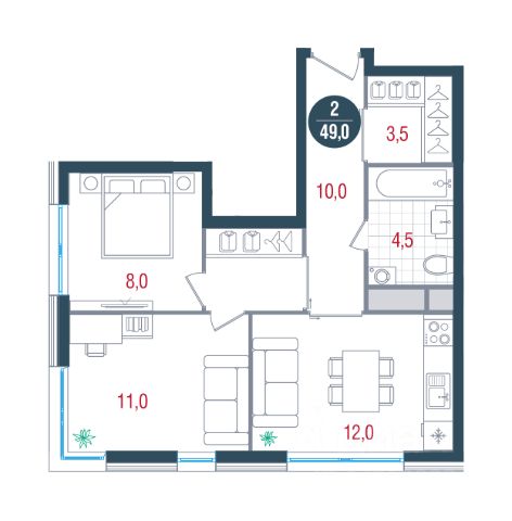 Продаётся 1-комнатная квартира в строящемся доме (Корпус 3), срок сдачи: III-кв. 2026, общей площадью 49 кв.м., на 7 этаже. Новый жилой комплекс "Кавказский бульвар 51/2" от Концерна Русич