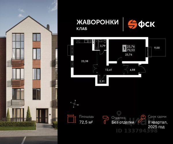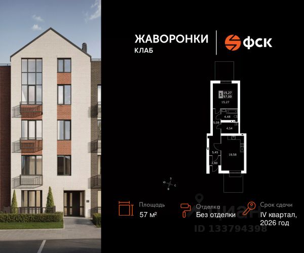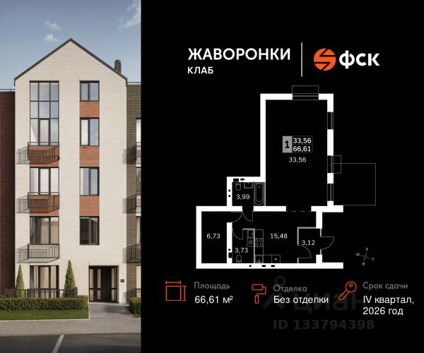Прямая продажа от застройщика! Загородный жилой комплекс класса Комфорт Плюс. Продаётся 1-к квартира 113 общей площадью 28.87 кв.м на 2-м этаже 4 этажного дома. Без отделки. Расположение комплекса: Для создания гармоничного пространства в проекте собрана вся необходимая инфраструктура, начиная от закрытых дворов с детскими площадками и зонами отдыха, тренажерного спортивного зала с мини-саунами и детской комнаты, до благоустроенной набережной, где разместится большой игровой хаб с прогулочным маршрутом и зоной барбекю. Благоприятная роза ветров и отсутствие производств влияют на качество воздуха. Вода и природа успокаивают и заряжают энергией. В жилом комплексе "Жаворонки Клаб" создана современная образовательная среда с полным циклом обучения от детского сада до старших классов. Школа 560 мест с инновационным оснащением. Детский сад 260 мест. Все образовательные учреждения будут муниципальными и записаться в них сможет каждый маленький житель комплекса. Дорога до школы или детского сада займет не более 5 минут. Ваш ребенок поспит подольше и не опоздает к первому уроку! Здесь также будет расположена муниципальная поликлиника, административно-бытовой комплекс, магазины и кафе. Транспортная доступность: В 30 м от территории ЖК находятся остановки общественного транспорта, откуда можно добраться до ближайших железнодорожных станций Санино (5 мин.), Крёкшино (7 мин.) и Жаворонки (7 мин.), а в 10 минутах - остановки маршрутов, идущих до станций метро Саларьево и Парк Победы. Съезд на Минское шоссе расположен в 700 м от ЖК. Внутренняя инфраструктура: В рамках проекта будут построены муниципальные детский сад и общеобразовательная школа, административно-бытовой комплекс (магазины формата "у дома", точки бытовых услуг, street-retail, кафе, кофейня, аптека, а также многофункциональный торгово-развлекательный центр с ФОК и амбулаторией. Для удобства и комфорта жителей, когда все "под рукой" мы разместили в ЖК бесплатный тренажерный зал с раздевалками и мини-саунами. Сюда можно приходить самостоятельно или с личным тренером для функциональной тренировки. Для детей обустроена игровая с множеством развивающих сюжетных игр, а также различные "лазалки". Эта детская комната также подойдет для празднования дня рождения ребенка.