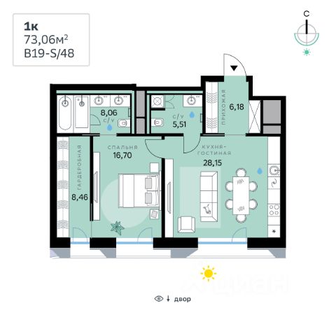 В продаже — однокомнатная квартира с чистовой отделкой, общей площадью 48,06 кв. м. Квартира расположена на девятом этаже одинадцатиэтажной секции корпуса класса Адвансд в новом районе СберСити, который строит Сбер. Дом находится на второй береговой линии Москвы-реки. Сочетание элегантной архитектуры от ведущего итальянского бюро и передовых технологий на всех уровнях — от квартиры до инфраструктуры района. Отделка фасадов корпуса класса Адвансд выполнена из природного камня, глазурованной плитки и алюминия. В квартирах предустановлена система "умный дом" — комплекс решений, объединяющий квартиру, дом и прилегающую территорию. Жильцы смогут регулировать климат и освещение голосом или со смартфона, а также управлять сценариями освещения по заданным параметрам. Проведены работы по улучшению шумоизоляции, установлены двухкамерные стеклопакеты с алюминиевым профилем и скрытыми створками. В санузлах — тёплый пол, высота потолков в квартире — от 3 м. В доме расположены: • уютное лобби, • лапомойка, • общественная терраса, • коворкинг для жителей, • собственная спортивная студия, • колясочная и велосипедная комната на первом этаже, • детская игровая комната, • подземный паркинг. СберСити — это новый жилой и деловой район на западе Москвы, в одном из самых экологически чистых и престижных мест столицы. Это первая в России и крупнейшая в мире инновационная городская среда, созданная по международным стандартам зелёного проектирования. Здесь внедряются решения в области энергоснабжения, вакуумного мусороудаления, тестирования зелёных технологий, а в дальнейшем — системы искусственного интеллекта для управления домами и городской инфраструктурой. Строительство проекта началось в 2021 году, заселение первых корпусов — с лета 2024-го. Общая площадь территории — 461 га, из них более 2,5 млн кв. м жилья и около 833 тыс. кв. м офисных пространств. Будет построено 7 школ, 13 детских садов и 2 поликлиники. В СберСити будут жить 65 тыс. человек и работать 70 тыс. Развитием территории занимается АО "Рублёво-Архангельское", входящее в группу Сбер. СберСити — место, где хочется жить, работать и растить детей. Переезжайте в СберСити!