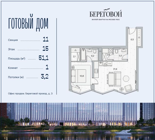 Река. Парк. Сити. Готовый дом в идеальном месте. Продается 1-комнатная квартира на 12 этаже с панорамным остеклением и видом на Береговой пр-д. Береговой — квартал-курорт в центре столицы. Готовый дом на первой линии Москвы-реки. Пешеходная набережная начинается прямо от дома — никаких дорог между вами и рекой. Уникальное сочетание природы парка Фили и ритма Сити. Ключи от нового образа жизни в Береговом: • 12 террас на крышах — ваши виды на Москву с высоты птичьего полета • Пешеходная набережная прямо у дома — ни одной машины между вами и рекой • Лобби с камином, переговорной и консьерж-сервисом • Флагманский Encore Fitness — самый большой в сети (4700 м²) с бассейном, термами и спа-комплексом • Детство на берегу Москвы-реки — в рамках проекта будут построены две школы и детский сад рядом с домом • Гастрономическая набережная: рестораны и премиум-сервисы откроются на первых этажах • Причал "Береговой" рядом с домом — путешествуйте по городу, пока другие стоят в пробках • Безопасность и уединение: контроль доступа на территорию, видеонаблюдение и круглосуточная диспетчерская • Двухуровневый подземный паркинг и кладовые Безупречная квартира для жизни: • Пространство света и воздуха: панорамные окна и высокие потолки 3.2 м • Технологии: центральное кондиционирование и роботизированная система очистки фасадов — вид из окна всегда будет идеальным • Совершенство планировки: просторная кухня-гостиная, минимум коридоров, максимум полезной площади • Квартира без отделки — возможность раскрыть преимущества планировки в вашем уникальном интерьере. Или выбирайте свою версию идеального дома в коллекции планировок: • С изолированными спальнями • Мастер-спальнями с гардеробными и ванными • Видовые ванные комнаты • Функциональные постирочные Эксклюзивные лоты: • Пентахусы с приватными террасами • Двухуровневые пентхаусы Локация, о которой мечтают 15 минут до Сити на машине — и вы в эпицентре деловой жизни. Две станции метро в пешей доступности — когда каждая минута на счету. Утром — пробежка по парку Фили, вечером — прогулка на велосипеде вдоль реки, выходные — водный спорт в Крылатском. Речные трамвайчики вместо такси, зеленые парки и благоприятная экология — привилегии престижного ЗАО Москвы. Условия покупки: выгодные программы покупки от застройщика, специальные условия при полной оплате. Оставляйте заявку на персональную презентацию в шоу-руме.