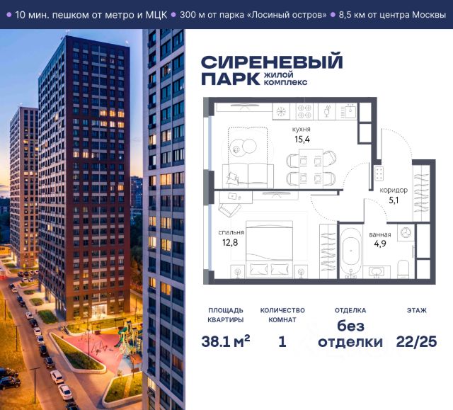 Продаётся просторная 1-комнатная квартира общей площадью 36.5 м² на 16 этаже в новом жилом комплексе "Сиреневый парк", расположенном в Восточном административном округе Москвы на улице Тагильская. Всего 10 минут ходьбы от станции метро "Бульвар Рокоссовского" и одноимённой платформы МЦК. Высококачественное монолитное строительство гарантирует сохранение тепла в доме, а наличие квартир с предчистовой и чистовой отделкой позволяет вам сэкономить время и сразу же переехать в свое жилье после покупки. Благодаря разнообразию планировок вы сможете выбрать идеальный вариант, соответствующий вашим предпочтениям и образу жизни. Предлагаются квартиры: - с просторными кухнями-гостиными, - с нишами для хранения вещей и отдельными гардеробными, - мастер-спальни с собственными санузлами, - большие комнаты с высокими потолками (2,9 м) и с увеличенными безопасными окнами (1,95 м) , которые наполнят ваш дом естественным светом; - с чистовой отделкой по двум дизайн-проектам на выбор; - с остекленными лоджиями и панорамными видами на лес. Каждая деталь в этом доме создана для вашего комфорта: - безбарьерная среда, - бесшумные скоростные лифты, - машиноместа в отапливаемом подземном паркинге и кладовые на -1 этаже с доступом из лифта, - развитая инфраструктура с супермаркетами, кафе, фитнес-клубами, салонами красоты и частным детским садом обеспечивает максимальное удобство жителям. В 300 метрах от ЖК расположен Национальный парк "Лосиный остров". Способы покупки: 100%, Trade-in, Семейная ипотека без наценки, стандартная ипотека. Запишитесь на просмотр в офис продаж и получите свою персональную скидку по акции Назови свою скидку. ЖК "Сиреневый парк" — гармония в деталях, совершенство в каждом моменте. Застройщик проекта - AFI Development.