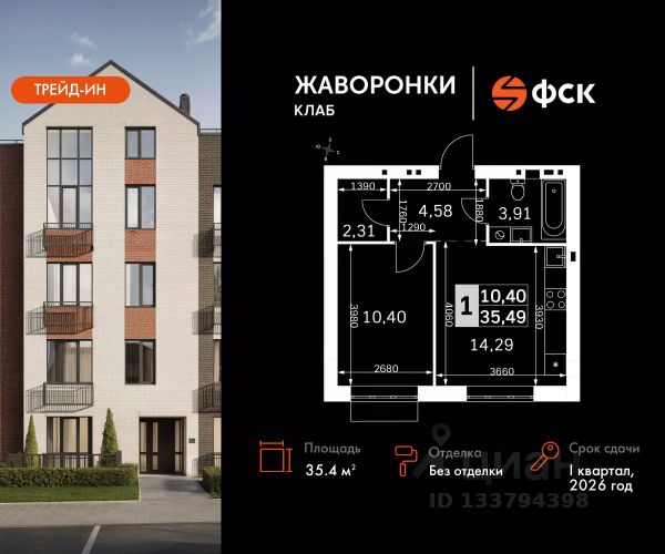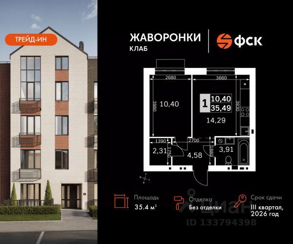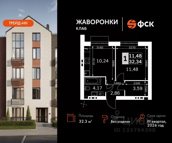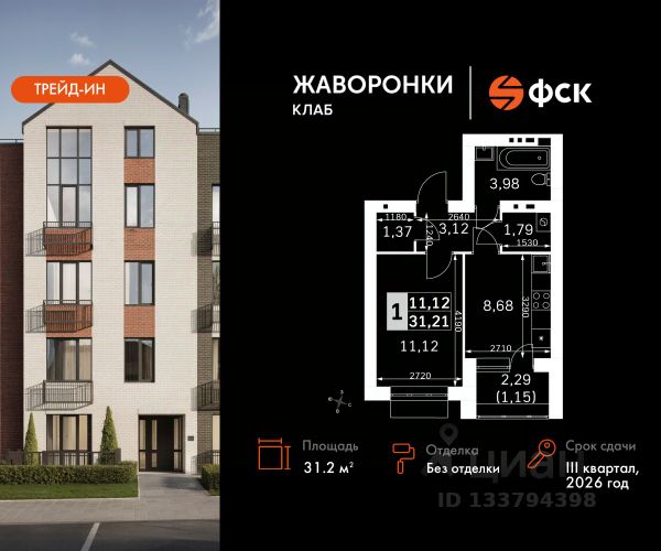 Прямая продажа от застройщика! Загородный жилой комплекс класса Комфорт Плюс. Продаётся 1-к квартира номер 112 общей площадью 31.21 кв.м на 2-м этаже 4 этажного дома. Без отделки. Особенности: - Квартира доступна к покупке в Trade-In. - Линейная планировка - максимальная функциональность и удобство. - Гардеробная - удобство для хранения и организации вещей. - Лоджия - уютное место для отдыха и тишины. - Вид из окна: улица - Бесплатный трансфер до загородного поселка - 5 минут до МЦД-4 - Отличный вариант для проживания или инвестиций - Двухуровневая квартира - пространство и стиль в одном. - Своя благоустроенная набережная в поселке, - Престижная школа и детский сад на территории, - Закрытая территория и видеонаблюдение - Собственный парк вдоль набережной - Круглосуточная охрана - Зона с беседками и барбекю - Живописная река в пешей доступности - Квартиры с высокими потолками 7 м - Малоэтажный квартал у реки Квартиру можно приобрести с предчистовой (White box) и чистовой отделкой. Вам не придётся заниматься черновыми работами, а трудоемкий ремонт мы возьмем на себя! Расположение комплекса: Для создания гармоничного пространства в проекте собрана вся необходимая инфраструктура, начиная от закрытых дворов с детскими площадками и зонами отдыха, тренажерного спортивного зала с мини-саунами и детской комнаты, до благоустроенной набережной, где разместится большой игровой хаб с прогулочным маршрутом и зоной барбекю. Благоприятная роза ветров и отсутствие производств влияют на качество воздуха. Вода и природа успокаивают и заряжают энергией. В жилом комплексе "Жаворонки Клаб" создана современная образовательная среда с полным циклом обучения - от детского сада до старших классов. Школа 560 мест с инновационным оснащением. Детский сад 260 мест. Все образовательные учреждения будут муниципальными и записаться в них сможет каждый маленький житель комплекса. Дорога до школы или детского сада займет не более 5 минут. Ваш ребенок поспит подольше и не опоздает к первому уроку! Здесь также будет расположена муниципальная поликлиника, административно-бытовой комплекс, магазины и кафе. Транспортная доступность: В 30 м от территории ЖК находятся остановки общественного транспорта, откуда можно добраться до ближайших железнодорожных станций Санино (5 мин.), Крёкшино (7 мин.) и Жаворонки (7 мин.), а в 10 минутах - остановки маршрутов, идущих до станций метро Саларьево и Парк Победы. Съезд на Минское шоссе расположен в 700 м от ЖК. Внутренняя инфраструктура: В рамках проекта будут построены муниципальные детский сад и общеобразовательная школа, административно-бытовой комплекс (магазины формата "у дома", точки бытовых услуг, street-retail, кафе, кофейня, аптека, а также многофункциональный торгово-развлекательный центр с ФОК и амбулаторией. Для удобства и комфорта жителей, когда все "под рукой" мы разместили в ЖК бесплатный тренажерный зал с раздевалками и мини-саунами. Сюда можно приходить самостоятельно или с личным тренером для функциональной тренировки. Дл