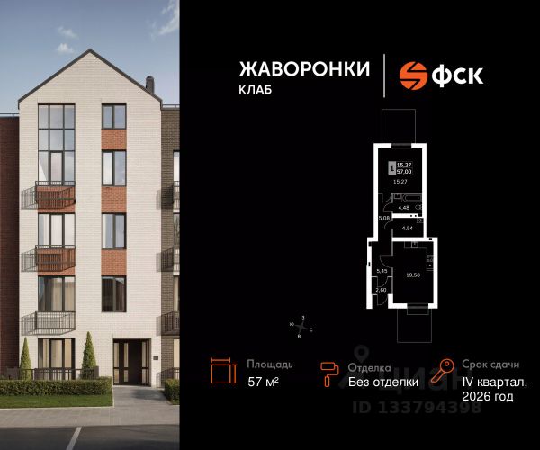 Прямая продажа от застройщика! Загородный жилой комплекс класса Комфорт Плюс. Продаётся 1-к квартира 70 общей площадью 37.3 кв.м на 4-м этаже 4 этажного дома. Без отделки. Расположение комплекса: Для создания гармоничного пространства в проекте собрана вся необходимая инфраструктура, начиная от закрытых дворов с детскими площадками и зонами отдыха, тренажерного спортивного зала с мини-саунами и детской комнаты, до благоустроенной набережной, где разместится большой игровой хаб с прогулочным маршрутом и зоной барбекю. Благоприятная роза ветров и отсутствие производств влияют на качество воздуха. Вода и природа успокаивают и заряжают энергией. В жилом комплексе "Жаворонки Клаб" создана современная образовательная среда с полным циклом обучения от детского сада до старших классов. Школа 560 мест с инновационным оснащением. Детский сад 260 мест. Все образовательные учреждения будут муниципальными и записаться в них сможет каждый маленький житель комплекса. Дорога до школы или детского сада займет не более 5 минут. Ваш ребенок поспит подольше и не опоздает к первому уроку! Здесь также будет расположена муниципальная поликлиника, административно-бытовой комплекс, магазины и кафе. Транспортная доступность: В 30 м от территории ЖК находятся остановки общественного транспорта, откуда можно добраться до ближайших железнодорожных станций Санино (5 мин.), Крёкшино (7 мин.) и Жаворонки (7 мин.), а в 10 минутах - остановки маршрутов, идущих до станций метро Саларьево и Парк Победы. Съезд на Минское шоссе расположен в 700 м от ЖК. Внутренняя инфраструктура: В рамках проекта будут построены муниципальные детский сад и общеобразовательная школа, административно-бытовой комплекс (магазины формата "у дома", точки бытовых услуг, street-retail, кафе, кофейня, аптека, а также многофункциональный торгово-развлекательный центр с ФОК и амбулаторией. Для удобства и комфорта жителей, когда все "под рукой" мы разместили в ЖК бесплатный тренажерный зал с раздевалками и мини-саунами. Сюда можно приходить самостоятельно или с личным тренером для функциональной тренировки. Для детей обустроена игровая с множеством развивающих сюжетных игр, а также различные "лазалки". Эта детская комната также подойдет для празднования дня рождения ребенка.