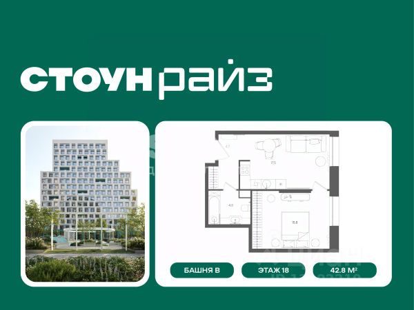 Старт продаж квартир в ЖК бизнес+ класса от девелопера STONE В продаже функциональная и светлая односпальная квартира с кухней-гостиной и одной спальней для реализации любого дизайн-решения, идеально подходящая молодым парам и небольшим семьям. Квартира расположена в камерном низкоэтажном жилом комплексе бизнес+ в одной станции от кольца. СТОУН Райз находится в уникальной точке с быстрым доступом ко всем ключевым локациям Москвы. Жилой комплекс располагается на границе Таганского района в одной станции от Кольцевой линии метро и в 8 минутах от Садового кольца. Близость к ЦАО обеспечивает выезды на основные магистрали. В 3 минутах от комплекса располагается новый ТПУ Серп Молот, которые объединяет 2 линии метро и МЦД. - 3 мин. м. "Римская", "Площадь Ильича" - 3 мин ТПУ "Серп и Молот", МЦД-2, МЦД-4 - 2 станции на метро до ГЭС-2 и Третьяковки, до Чистых прудов и Сретенского бульвара по салатовой - 10 минут пешком до набережной Яузы и 20 минут до трех разных парков. Архитектура Архитектурный проект разработан московским бюро WALL, известным работой над премиальными жилыми и офисными зданиями. Фасады домов выполнены из бетонной плитки серого и лого м изумрудного оттенков, а также металлических кассет. Вход в комплекс осуществляется через единое гранд-лобби. Здесь будут расположены кофейня, почты с локерами, а также комфортная гостиная с мягкой мебелью. В каждом корпусе расположены лаунж-зоны с естественным освещением в зоне лифтов. Благоустройство Территория комплекса полностью закрыта для машин и случайных посетителей. В центре - прогулочная аллея с дизайнерским освещением и местами для отдыха. В комплексе также обустроена площадка для выгула собак. Маршруты движения внутри двора продуманы для удобства пеших прогулок. Инфраструктура жилого комплекса На первых этажах комплекса расположены кафе, магазины, фитнес-студия и другие сервисные объекты. Двухуровневый подземный паркинг с возможностью выбора стандартных, увеличенных или семейных мест. Для удобства жителей предусмотрены лапомойки, келлеры, места для временного хранения велосипедов и самокатов. В СТОУН Райз также спроектировано многоуровневое пространство для жителей: - Бизнес-гостиная и детская-игровая, многофункциональное цифровое пространство - Благоустроенная общественная терраса с панорамными видами STONE - девелопер коммерческой и жилой недвижимости классов бизнес и премиум в Москве с 19-летним опытом. С 2022 года занимает лидирующую позицию на офисном рынке (рейтинг РБК). Сегодня в портфеле девелопера представлено 3 млн кв. м построенных, строящихся и проектируемых объектов, из которых более 1 млн кв. м находятся в стадии строительства. Компания имеет самый масштабный проектный портфель офисной недвижимости класса А на московском рынке (данные NF Group) и возглавляет топ-6 устойчивых девелоперов согласно исследованию F Research от Forbes. В 2023 году частью стратегии по развитию компании стала диверсификация портфеля, в результате которой девелопер провел ребрендинг и запустил нап