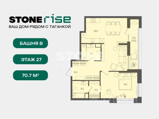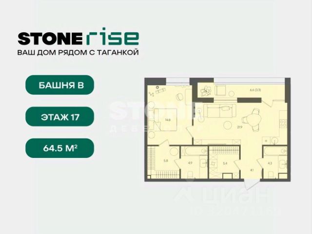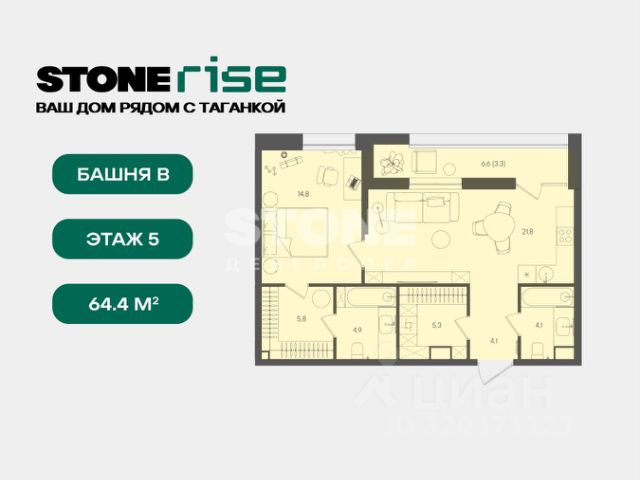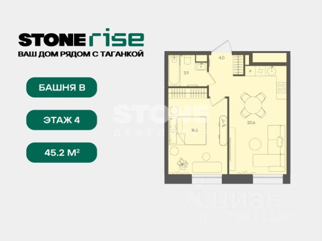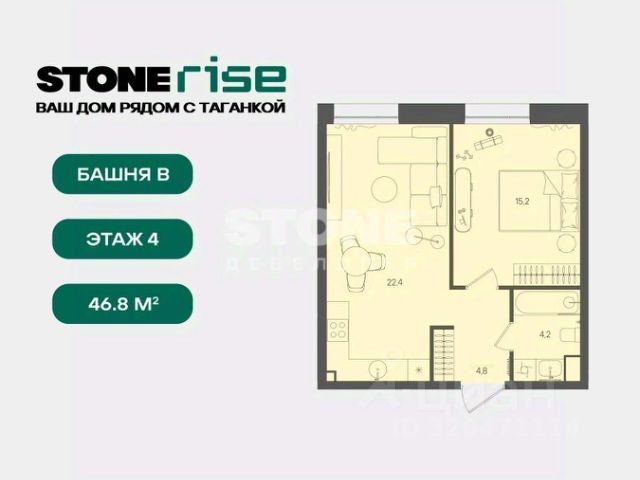 Старт продаж квартир в ЖК бизнес+ класса от девелопера STONE В продаже функциональная и светлая односпальная квартира с кухней-гостиной и одной спальней для реализации любого дизайн-решения, идеально подходящая молодым парам и небольшим семьям. Квартира расположена в камерном низкоэтажном жилом комплексе бизнес+ в одной станции от кольца. STONE Rise находится в уникальной точке с быстрым доступом ко всем ключевым локациям Москвы. Жилой комплекс располагается на границе Таганского района в одной станции от Кольцевой линии метро и в 8 минутах от Садового кольца. Близость к ЦАО обеспечивает выезды на основные магистрали. В 3 минутах от комплекса располагается новый ТПУ Серп Молот, которые объединяет 2 линии метро и МЦД. - 3 мин. м. "Римская", "Площадь Ильича" - 3 мин ТПУ "Серп и Молот", МЦД-2, МЦД-4 - 2 станции на метро до ГЭС-2 и Третьяковки, до Чистых прудов и Сретенского бульвара по салатовой - 10 минут пешком до набережной Яузы и 20 минут до трех разных парков. Архитектура Архитектурный проект разработан московским бюро WALL, известным работой над премиальными жилыми и офисными зданиями. Фасады домов выполнены из бетонной плитки серого и лого м изумрудного оттенков, а также металлических кассет. Вход в комплекс осуществляется через единое гранд-лобби. Здесь будут расположены кофейня, почты с локерами, а также комфортная гостиная с мягкой мебелью. В каждом корпусе расположены лаунж-зоны с естественным освещением в зоне лифтов. Благоустройство Территория комплекса полностью закрыта для машин и случайных посетителей. В центре - прогулочная аллея с дизайнерским освещением и местами для отдыха. В комплексе также обустроена площадка для выгула собак. Маршруты движения внутри двора продуманы для удобства пеших прогулок. Инфраструктура жилого комплекса На первых этажах комплекса расположены кафе, магазины, фитнес-студия и другие сервисные объекты. Двухуровневый подземный паркинг с возможностью выбора стандартных, увеличенных или семейных мест. Для удобства жителей предусмотрены лапомойки, келлеры, места для временного хранения велосипедов и самокатов. В STONE Rise также спроектировано многоуровневое пространство для жителей: - Бизнес-гостиная и детская-игровая, многофункциональное цифровое пространство - Благоустроенная общественная терраса с панорамными видами STONE - девелопер коммерческой и жилой недвижимости классов бизнес и премиум в Москве с 19-летним опытом. С 2022 года занимает лидирующую позицию на офисном рынке (рейтинг РБК). Сегодня в портфеле девелопера представлено 3 млн кв. м построенных, строящихся и проектируемых объектов, из которых более 1 млн кв. м находятся в стадии строительства. Компания имеет самый масштабный проектный портфель офисной недвижимости класса А на московском рынке (данные NF Group) и возглавляет топ-6 устойчивых девелоперов согласно исследованию F Research от Forbes. В 2023 году частью стратегии по развитию компании стала диверсификация портфеля, в результате которой девелопер провел ребрендинг и запусти