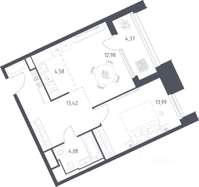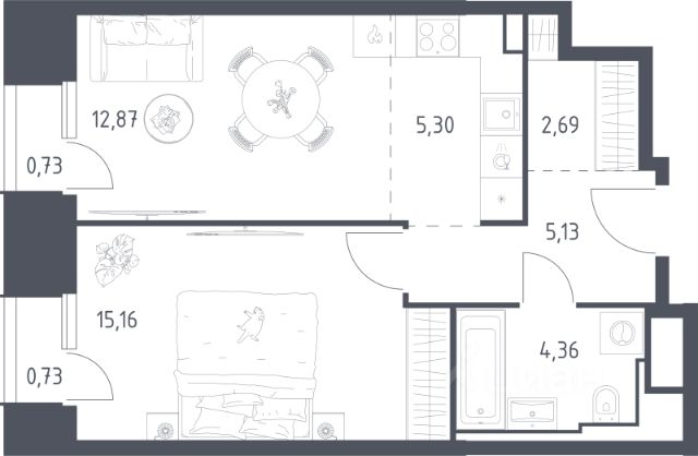 • Комната 10,3 м² — изолированная, для полноценного отдыха