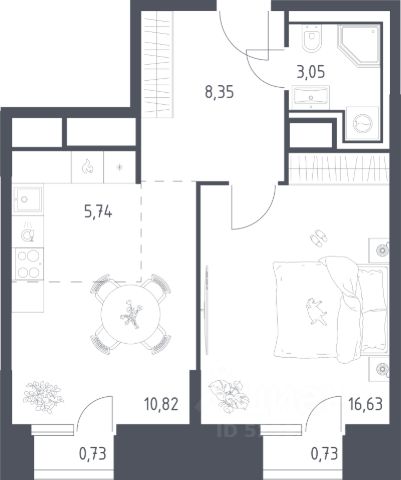 В этой квартире есть одна приятная особенность, которая встречается не в каждой однушке: отдельная гардеробная комната 3,39 м². Это не шкаф в прихожей, а полноценное место для хранения — вещи не будут захламлять жилое пространство. Кухня 10,6 м² достаточно просторна, чтобы не чувствовать себя в углу. А комната 10,3 м² станет вашим тихим убежищем. Всё вместе — 32,84 м², которые распределены с умом.