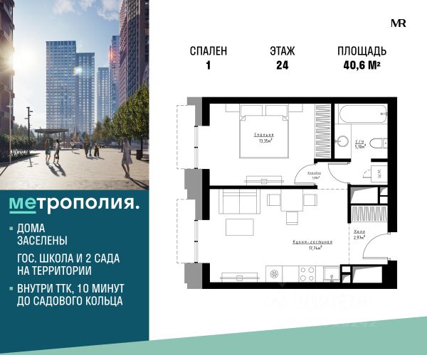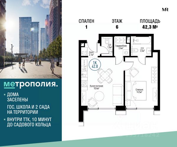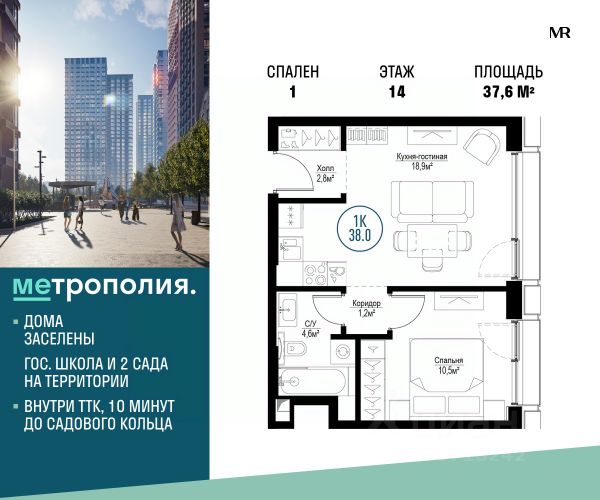 Продаётся 1-комнатная квартира общей площадью 37.60 м², на 7 этаже. Метрополия - это город городов. Коллекция лучших решений из самых прогрессивных мегаполисов планеты. Для тех, кому комфортно в любой точке мира. Все корпуса выполнены в своем индивидуальном стиле и получили свои названия в честь мировых метрополий. Эта концепция сохраняется и в дизайнерских лобби, которые выполнены в едином стиле с детальной проработкой декора и использованием характерных для каждого мегаполиса материалов. Высотные здания "Метрополии" образуют благоустроенное дворовое пространство на 4,6 га, которое украсят более 400 деревьев и несколько сотен кустарников, живописные цветочные клумбы и аккуратные газоны. Территория комплекса продумана до мелочей: - Запланировано строительство государственной школы, а также 2 частных и одного государственного детских садов; - Сформированы несколько тематических зон; - Предусмотрено место для спокойного отдыха с кафе; - Зона активности для сторонников здорового образа жизни с тренажерами для воркаута и площадкой для стритбола и петанка. Детские площадки разделены по возрастам от малышей до подростков, на всех площадках используется оборудование европейского производителя, уложено резиновое покрытие, которое позволяет детям играть в полной безопасности. Современные инженерные решения не оставят вас равнодушными: - Скоростные и бесшумные лифты; - Пожарная и охранная сигнализация; - Система навигации с ночной подсветкой по всей территории комплекса; - Wi-Fi-покрытие в зоне лобби и по всей территории комплекса; - Система распознавания лиц для доступа на территорию ЖК; - Система контроля и учета энергоресурсов; - Контроль доступа на парковку по системе считывания номеров.