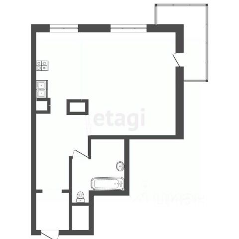 - Однокомнатная квартира площадью 45,5 м²