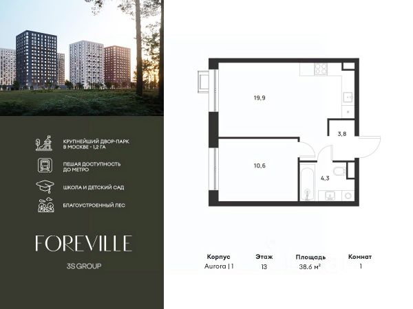 Пешая доступность от метро и московская прописка! Продается уютная 1-комн. квартира площадью 33,2 кв.м на 5 этаже 17 этажного жилого комплекса бизнес-класса Foreville от 3S Group. Общая площадь: 33,2 кв.м., жилая: 20,1 кв.м., площадь кухни-гостиной: 14,9 кв.м., высота потолков: 2,72 м., окна выходят на улицу. [1] Квартира предлагается без отделки, что идеально подходит для воплощения собственного дизайнерского решения. Также доступна опция предчистовой отделки, стоимость которой включается в общую цену квартиры. О проекте: Пространство Комплекс располагает крупнейшим приватным двор-парком в Новой Москве площадью 1,2 Га, предлагая жителям огромное пространство для отдыха, спорта и игр на свежем воздухе. Природный ландшафт Внутренний лесопарк с более чем 183 взрослыми деревьями и 10 320 цветущими кустарниками создает уникальную природную атмосферу для каждого времени года. Игровые и спортивные зоны Обширные площадки с безопасным покрытием, специализированные зоны для детей разных возрастных групп и взрослых, включая воркаут и настольный теннис, способствуют активному и здоровому образу жизни. Экологичность и долговечность Использование натуральных материалов, таких как лиственница, и крупноформатной бетонной плитки для покрытия, подчеркивает стремление проекта к экологичности и устойчивости. Безопасность и уединение Внутренний двор без машин обеспечивает безопасность для детей и спокойствие для взрослых. Территория огорожена и находится под круглосуточным видеонаблюдением. Сохранение времени Благодаря превосходной транспортной доступности и близости к новой станции метро Корниловская, Foreville позволяет жителям экономить время для семьи и отдыха на природе, минимизируя необходимость длительных поездок. Foreville не просто жилье, а целая экосистема для комфортной и гармоничной жизни на свежем воздухе, совмещая преимущества городской инфраструктуры и непосредственную близость к природе.