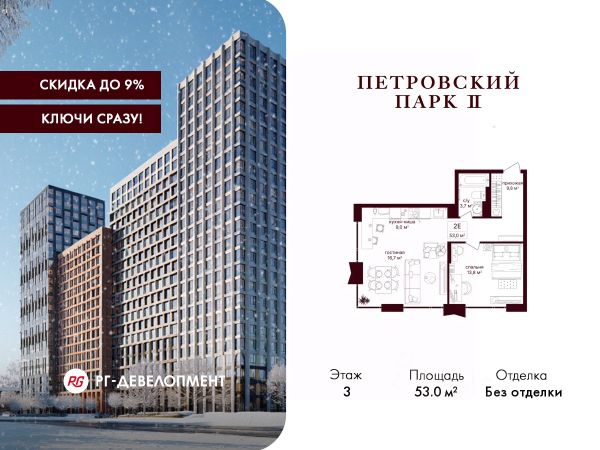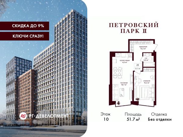 Рассрочка 0% + скидка 2%. Первый платёж 30%, второй - не позднее 31.12.2026 г. Продаётся 1-комнатная квартира 51.7 кв.м. в ЖК "Петровский парк II" на 10-м этаже 25 этажного дома. ЖК "Петровский парк II" — жилой комплекс в Савёловском районе, где город ощущается иначе. Здесь история и масштаб Москвы не давят, а задают фон для спокойной, уверенной жизни рядом с центром. Это место, где статус читается не в громких формулировках, а в окружении, архитектуре и ощущении пространства. Коротко о важном: • Район с глубоким историческим контекстом и парковым окружением; • 5 минут пешком до метро "Динамо", рядом с деловой и культурной жизнью города; • Редкое сочетание: энергия мегаполиса и тишина зелёных аллей; • Архитектура от бюро Syntaxis с пластикой форм и индивидуальным характером фасадов; • Панорамные виды на город и зелёные массивы Петровского и Тимирязевского парков; • Закрытый двор без машин, вдохновлённый эстетикой дворцовых садов; • Просторные гранд-лобби с высокими потолками и выверенной, респектабельной эстетикой; • Частный детский сад во дворе; • Подземный паркинг и кладовые; • РГ-Девелопмент - ТОП-20 крупнейших застройщиков Москвы. Расположение комплекса формирует особое ощущение свободы выбора. Утром - прогулка по тенистым аллеям Петровского парка, днём - работа и встречи в деловых кластерах поблизости, вечером - культурные события, рестораны и городские пространства в нескольких минутах пути. Здесь расстояния измеряются не километрами, а шагами от дома. Архитектура "Петровского парка II" задумана как современная доминанта района и одновременно как уважительный диалог с исторической средой. Асимметричные объёмы, волнообразные элементы и игра света и тени создают выразительный, но сдержанный силуэт. Архитектура наполнена воздухом и визуальным ритмом, оставаясь спокойной и уверенной. Общественные пространства продолжают эту логику. Два гранд-лобби с высокими потолками и благородной цветовой палитрой воспринимаются как пространства, где хочется замедлиться: встретить гостей, перевести дыхание после дня или просто почувствовать уровень среды, в которой вы живёте. Внутренний двор комплекса - это отдельный мир, закрытый от машин и городского шума. Ландшафтный дизайн отсылает к регулярным дворцовым садам: геометрия аллей, зелёные "кабинеты", цветники и камерные зоны отдыха создают разные сценарии для повседневной жизни. Здесь органично соседствуют детские игровые пространства, плейхаб, спортивные зоны и тихие места для отдыха. На территории комплекса расположены магазины, кафе и рестораны, а также частный детский сад, встроенный в общую структуру двора. Подземный паркинг и кладовые поддерживают ощущение порядка и цельности пространства.