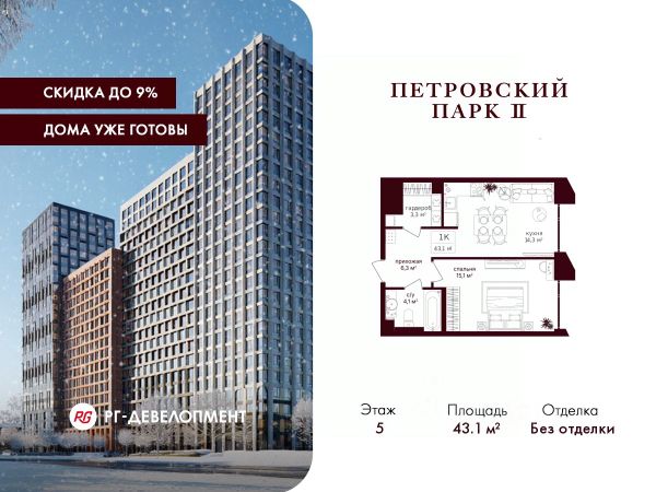 Рассрочка 0% + скидка 2%. Первый платёж 30%, второй - не позднее 31.12.2026 г. Продаётся 1-комнатная квартира 51.7 кв.м. в ЖК "Петровский парк II" на 10-м этаже 25 этажного дома. ЖК "Петровский парк II" — жилой комплекс в Савёловском районе, где город ощущается иначе. Здесь история и масштаб Москвы не давят, а задают фон для спокойной, уверенной жизни рядом с центром. Это место, где статус читается не в громких формулировках, а в окружении, архитектуре и ощущении пространства. Коротко о важном: • Район с глубоким историческим контекстом и парковым окружением; • 5 минут пешком до метро "Динамо", рядом с деловой и культурной жизнью города; • Редкое сочетание: энергия мегаполиса и тишина зелёных аллей; • Архитектура от бюро Syntaxis с пластикой форм и индивидуальным характером фасадов; • Панорамные виды на город и зелёные массивы Петровского и Тимирязевского парков; • Закрытый двор без машин, вдохновлённый эстетикой дворцовых садов; • Просторные гранд-лобби с высокими потолками и выверенной, респектабельной эстетикой; • Частный детский сад во дворе; • Подземный паркинг и кладовые; • РГ-Девелопмент - ТОП-20 крупнейших застройщиков Москвы. Расположение комплекса формирует особое ощущение свободы выбора. Утром - прогулка по тенистым аллеям Петровского парка, днём - работа и встречи в деловых кластерах поблизости, вечером - культурные события, рестораны и городские пространства в нескольких минутах пути. Здесь расстояния измеряются не километрами, а шагами от дома. Архитектура "Петровского парка II" задумана как современная доминанта района и одновременно как уважительный диалог с исторической средой. Асимметричные объёмы, волнообразные элементы и игра света и тени создают выразительный, но сдержанный силуэт. Архитектура наполнена воздухом и визуальным ритмом, оставаясь спокойной и уверенной. Общественные пространства продолжают эту логику. Два гранд-лобби с высокими потолками и благородной цветовой палитрой воспринимаются как пространства, где хочется замедлиться: встретить гостей, перевести дыхание после дня или просто почувствовать уровень среды, в которой вы живёте. Внутренний двор комплекса - это отдельный мир, закрытый от машин и городского шума. Ландшафтный дизайн отсылает к регулярным дворцовым садам: геометрия аллей, зелёные "кабинеты", цветники и камерные зоны отдыха создают разные сценарии для повседневной жизни. Здесь органично соседствуют детские игровые пространства, плейхаб, спортивные зоны и тихие места для отдыха. На территории комплекса расположены магазины, кафе и рестораны, а также частный детский сад, встроенный в общую структуру двора. Подземный паркинг и кладовые поддерживают ощущение порядка и цельности пространства.
