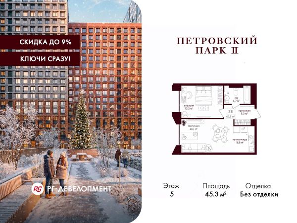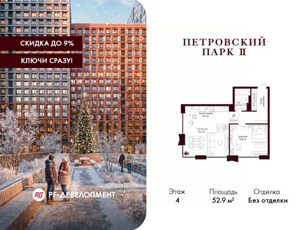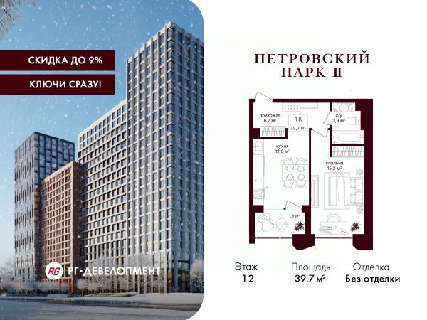 Рассрочка 0% + скидка 2%. Первый платёж 30%, второй - не позднее 31.12.2026 г. Продаётся 1-комнатная квартира 43.1 кв.м. в ЖК "Петровский парк II" на 5-м этаже 19 этажного дома. ЖК "Петровский парк II" — жилой комплекс в Савёловском районе, где город ощущается иначе. Здесь история и масштаб Москвы не давят, а задают фон для спокойной, уверенной жизни рядом с центром. Это место, где статус читается не в громких формулировках, а в окружении, архитектуре и ощущении пространства. Коротко о важном: • Район с глубоким историческим контекстом и парковым окружением; • 5 минут пешком до метро "Динамо", рядом с деловой и культурной жизнью города; • Редкое сочетание: энергия мегаполиса и тишина зелёных аллей; • Архитектура от бюро Syntaxis с пластикой форм и индивидуальным характером фасадов; • Панорамные виды на город и зелёные массивы Петровского и Тимирязевского парков; • Закрытый двор без машин, вдохновлённый эстетикой дворцовых садов; • Просторные гранд-лобби с высокими потолками и выверенной, респектабельной эстетикой; • Частный детский сад во дворе; • Подземный паркинг и кладовые; • РГ-Девелопмент - ТОП-20 крупнейших застройщиков Москвы. Расположение комплекса формирует особое ощущение свободы выбора. Утром - прогулка по тенистым аллеям Петровского парка, днём - работа и встречи в деловых кластерах поблизости, вечером - культурные события, рестораны и городские пространства в нескольких минутах пути. Здесь расстояния измеряются не километрами, а шагами от дома. Архитектура "Петровского парка II" задумана как современная доминанта района и одновременно как уважительный диалог с исторической средой. Асимметричные объёмы, волнообразные элементы и игра света и тени создают выразительный, но сдержанный силуэт. Архитектура наполнена воздухом и визуальным ритмом, оставаясь спокойной и уверенной. Общественные пространства продолжают эту логику. Два гранд-лобби с высокими потолками и благородной цветовой палитрой воспринимаются как пространства, где хочется замедлиться: встретить гостей, перевести дыхание после дня или просто почувствовать уровень среды, в которой вы живёте. Внутренний двор комплекса - это отдельный мир, закрытый от машин и городского шума. Ландшафтный дизайн отсылает к регулярным дворцовым садам: геометрия аллей, зелёные "кабинеты", цветники и камерные зоны отдыха создают разные сценарии для повседневной жизни. Здесь органично соседствуют детские игровые пространства, плейхаб, спортивные зоны и тихие места для отдыха. На территории комплекса расположены магазины, кафе и рестораны, а также частный детский сад, встроенный в общую структуру двора. Подземный паркинг и кладовые поддерживают ощущение порядка и цельности пространства.