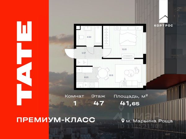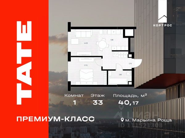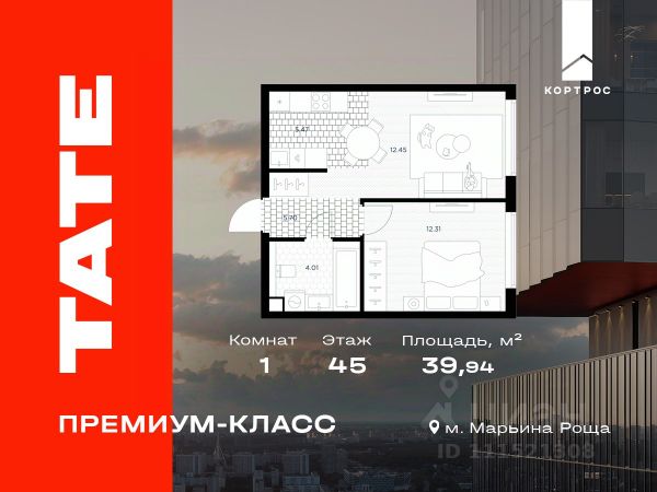 Указанная акционная стоимость доступна при 100% оплате или ипотеке без субсидирования. Цена действует до 31.12.2025 23:59:00. Стоимость без акции 26560689. Продается 1-комнатная квартира от застройщика в ЖК премиум-класса TATE на 47 этаже. Общая площадь 36,97 м². Отделка предчистовая (white box). 1 санузел. Вид из окна на Москва Сити. Башня A. Срок сдачи: 2 кв. 2027 Выдача ключей: 4 кв. 2027 Проект расположен на границе с ЦАО в районе Марьина Роща на улице Веткина. В шаговой доступности находится метро Марьина роща (5 минут), парки "Останкино" и "Сокольники" (15 минут). До центра столицы время в пути составит 15 минут на авто. На территории премиум квартала откроют спа- и фитнес-центр, бассейн, оборудуют детские и спортивные площадки. Предусмотрен подземный двухуровневый паркинг с контролем доступа и лифтом на жилые этажи. Паркинг рассчитан на 568 машино-мест. Доступ в жилой комплекс осуществляется по биометрическому контролю - Face ID. Территория закрытая с видеонаблюдением и консьерж-сервисом 24/7. Особенности ЖК: - 2 башни высотой от 41 до 49 этажей. - Исторический район; - Панорамная лаундж-зона на высоте 140 м; - На 4041 этажах видовые пентхаусы площадью до 200 м²; - Два вида отделки: лаконичный и монохромный WhiteBox или готовые интерьеры с безупречным чувством меры - Лобби с потолками высотой почти 6 м; - В отдельном 6-этажном здании на территории будут: просторный фитнес-центр с бассейном, концептуальный ресторан, офисные пространства; - Детские зоны и спортивные площадки; - 6 скоростных лифтов; - Лапомойки для животных; - Безбарьерная среда.