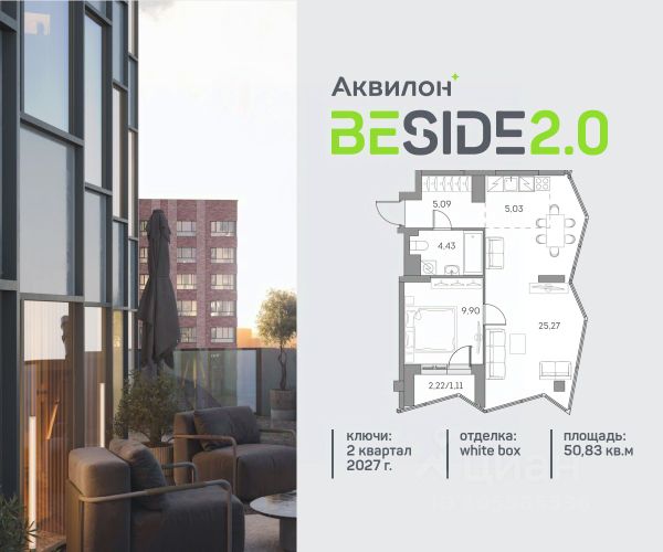 Зимний ЦЕНОпад. На данный лот распространяется скидка, которая действует только в январе! Продажа от застройщика. Продается уютная однокомнатная квартира на 22 этаже современного жилого комплекса Beside 2.0. Вид из окон: во двор и на улицу. Срок сдачи: 2 кв. 2027 г. Квартира с лоджией. Отделка WhiteBox: - Вам не придется заниматься черновыми работами. - Возможность реализовать любой дизайн-проект. Расположение: В Beside 2.0 все необходимое - в шаговой доступности, не нужно тратить много времени на дорогу до работы, школы и поликлиники, походы в магазины и кинотеатры. Квартал расположен на пересечении ключевых транспортных магистралей Москвы, что позволяет быстро и легко добраться до любой нужной локации. Выбирайте наиболее подходящее занятие или попробуйте все! - Спортивные центры - Ретейл на первых этажах - Событийная площадь с амфитеатром - Дворовые площадки для активностей Транспортная доступность: - 5 минут на машине до ТТК - 7 минут на машине до Садового кольца - 7 минут пешком до станции "Нижегородская Внутренняя инфраструктура Beside 2.0: - Своя школа на 825 учеников - Просторное и светлое гранд-лобби - Коворкинг на открытом воздухе - Детский клуб Akvilon Kids - Подземный паркинг - Колясочные и велосипедные - Сити-боксы для хранения - Профессиональная управляющая компания Преимущества: - Технология энергоэффективности Termo-S, снижающая теплопотерю домов и позволяющую экономить на электроснабжении - Soundstop - технология дополнительной шумоизоляции на 39 дБ в квартирах с WhiteBox и чистовой отделкой - Система умного дома inHome 3.0 позволит контролировать коммунальные расходы, оплачивать счета и пользоваться услугами, не выходя из умного дома - Vent-In - система циркуляции воздуха в каждой комнате