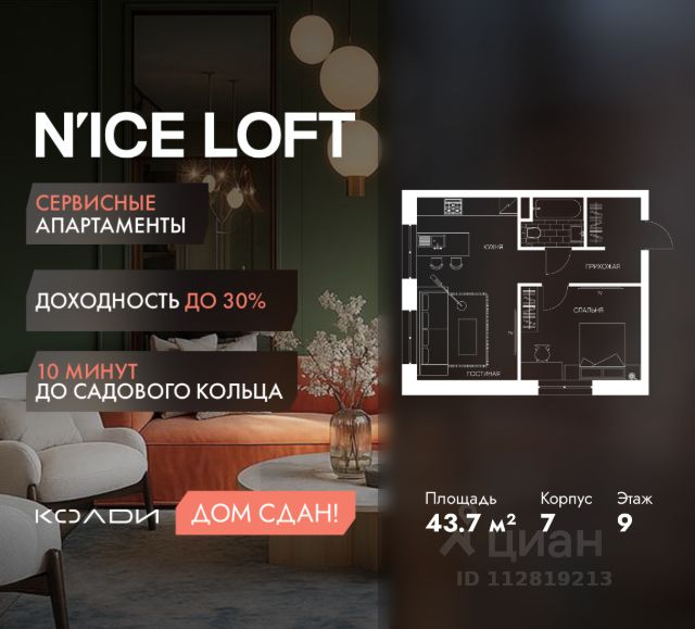 N'ICE LOFT — готовый комплекс апартаментов с собственным спортивным кластером в 10 минутах от Садового кольца. Комплекс апартаментов бизнес-класса N'ICE LOFT, девелопером которого выступила компания КОЛДИ, представляет собой знаковое жилое пространство, на территории которого органично объединены высококачественная инфраструктура для комфортной жизни и полноценный спортивный кластер. N'ICE LOFT — новая спортивная доминанта Москвы, где для жителей и их гостей предусмотрено более 20 000 м², созданных специально для тренировок, игр, восстановления и оздоровления. Автором выразительной городской эстетики выступило архитектурное бюро APEX. Строгие силуэты фасадов эффектно возвышаются над благоустроенным окружением, а световые блики элегантно подчеркивают структурное фасадное остекление. Сердце проекта — физкультурно-оздоровительный комплекс с двумя ледовыми аренами формата НХЛ — профессиональными площадками. Помимо спортивных арен на территории N'ICE LOFT предусмотрено пять многофункциональных залов, где каждый сможет реализовать свой спортивный потенциал. Для тех, кто предпочитает тренировки и прогулки на свежем воздухе, создан спортивный парк общей площадью 6 300 м² с воркаут-зонами, игровыми площадками и уединенными пространствами для отдыха. Также внутри квартала проложена километровая беговая дорожка, которая доступна к использованию в любое время года. Особое внимание архитекторы уделили входной группе — просторное авторское лобби с потолками до 9 метров с использованием природных элементов. Резиденты и их гости смогут насладиться садом, не покидая пределы дома. Территория апарт-комплекса N'ICE LOFT соответствует современным стандартам безопасности: инновационная система видеонаблюдения, охраняемый подземный паркинг и круглосуточный консьерж-сервис. Преимущества N'ICE LOFT: Готовый комплекс с собственным спортивным кластером в 10 минутах от Садового кольца Современная архитектура с выразительными контрастными фасадами Спортивная инфраструктура 20 000 м²: 2 ледовые арены формата НХЛ, 5 многофункциональных залов, беговая дорожка 1 км Спортивный парк 6 300 м² с зонами для разных видов активностей Более 10 видов спорта в одном кластере Апартаменты с панорамными окнами и потолками до 5 метров Видовые лоты с террасами и патио Авторское лобби с потолками до 9 метров Консьерж-сервис 24/7 Охраняемый подземный паркинг Продам 1-комнатную квартиру в стиле loft в Москве.