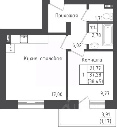 Продаётся 1-комнатная квартира в строящемся доме (Дом 1), срок сдачи: I-кв. 2026, общей площадью 38.21 кв.м., на 1 этаже. Квартал жилой застройки "Зеленый Оазис-Город"