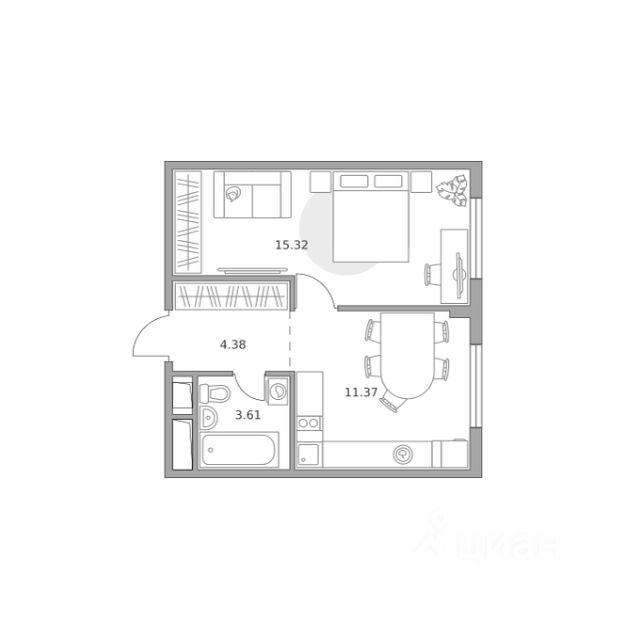 Продаётся 1-комнатная квартира 299, площадью 34,31 м², на 6 этаже в ЖК "Аникеевский" корпус 1.1. Стоимость — от 7328732 руб. Квартира без отделки, планировка односторонняя, окна на улицу.